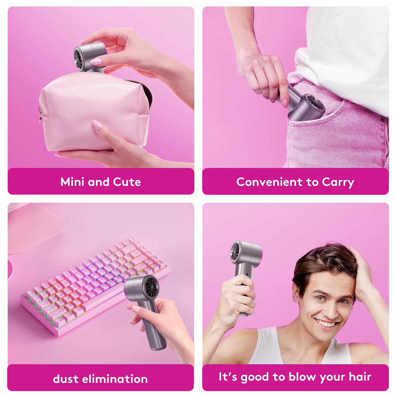 - 4 Adjustable Wind Speeds: This handheld mini fan adopts the latest powerful brushless motor, it absorbs wind from 360°. Just switch the 4 speeds by pressing the power button, this small fan can meet your various wind power needs in any scene