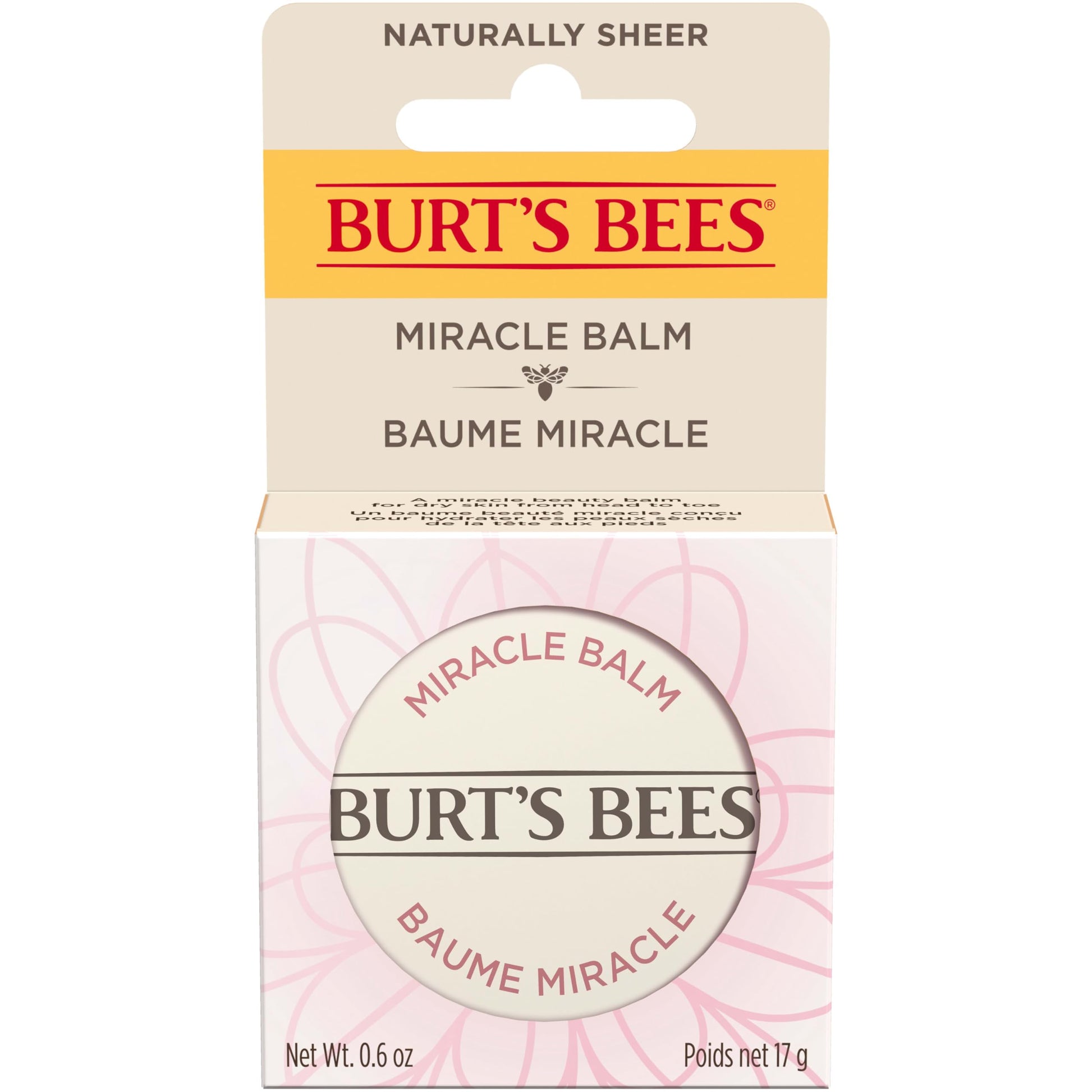 Details: US en-US Soothe, soften and moisturize dry skin on your face, lips, cuticles, elbows, or anywhere. Lightweight and non-greasy with a dewy finish, Burt's Bees® Goodness Glows Miracle Balm is made with a natural plant-derived emollient (squalene) that absorbs quickly, instantly hydrating and softening skin. Miracle Balm is a multi-purpose product. Use a dab of Miracle Balm as an eyebrow tamer to define or taper unruly eyebrows. Or, add a touch to your cheeks and brows as a highlighter. Tame flyaways, or apply as a lip moisturizer or gloss over your lips. Miracle Balm goes on smoothly wherever it is used, and blends well with or without makeup. Kind to your skin, Miracle Balm is formulated from a 100% natural origin formula without parabens, phthalates, SLS, or petrolatum, and packaged in a tin.