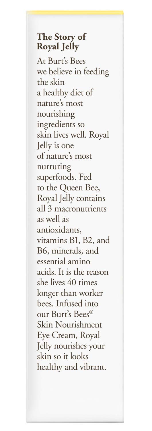 - UNDER EYE TREATMENT: Formulated with Royal Jelly, one of nature's most nourishing and hydrating substances, Burt’s Bees nourishing eye cream enhances the skin for a natural radiance and youthful glow