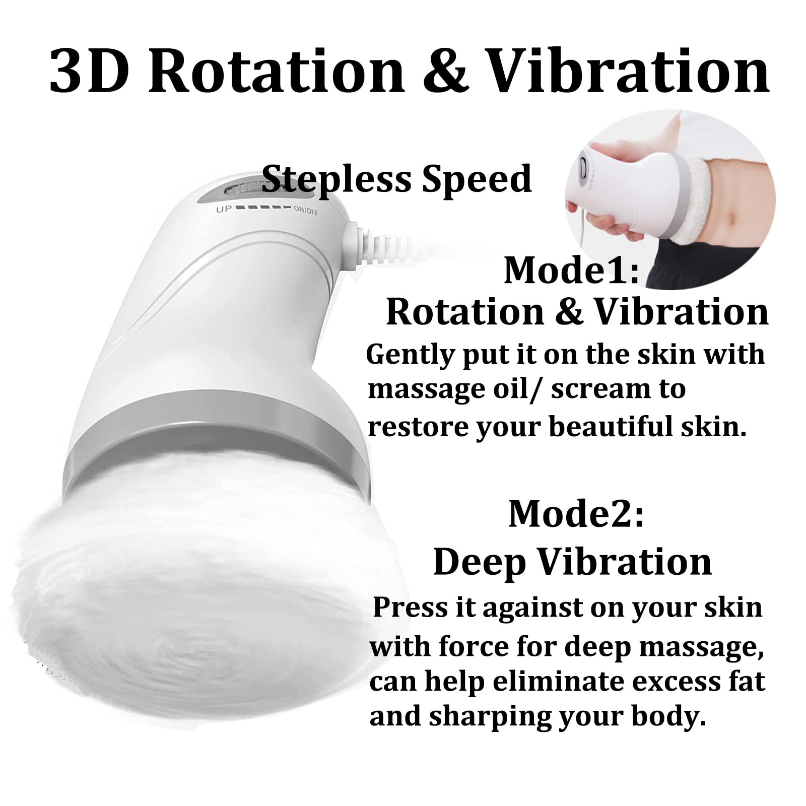 - Body Sculpting Machine Electric Cellulite Massager with replacement Washable Pads, Corded Electric Power supply, It is durable and There is no need to worry about battery aging, no need to charge and wait. The long enough wires make it convenient for whole body massage. Handheld Full Body Massage Machine for Back/Abdomen/Butt/Leg/Arms Deep Massage Relax, Powerful Rotaion Vibration Cellulite massage,
