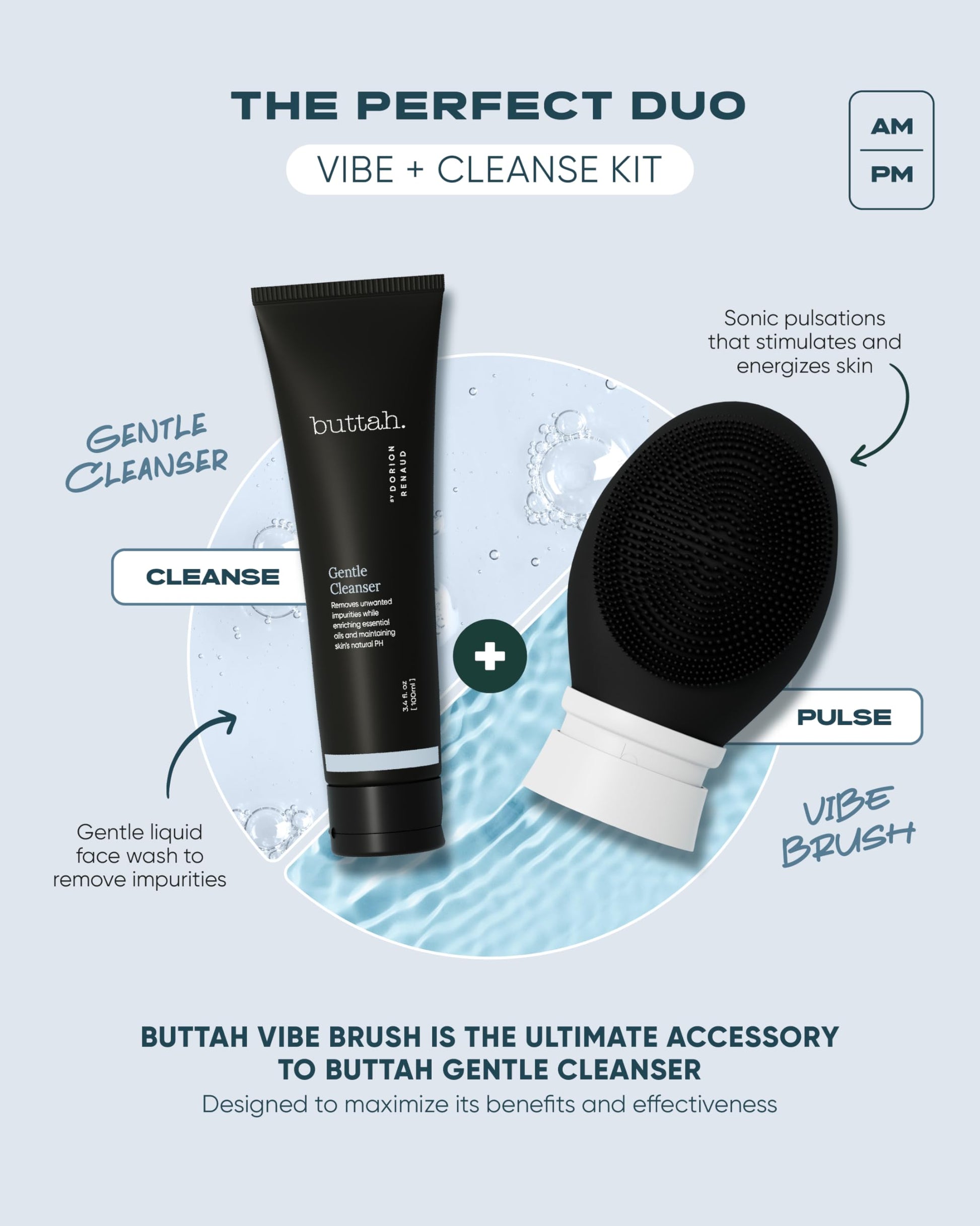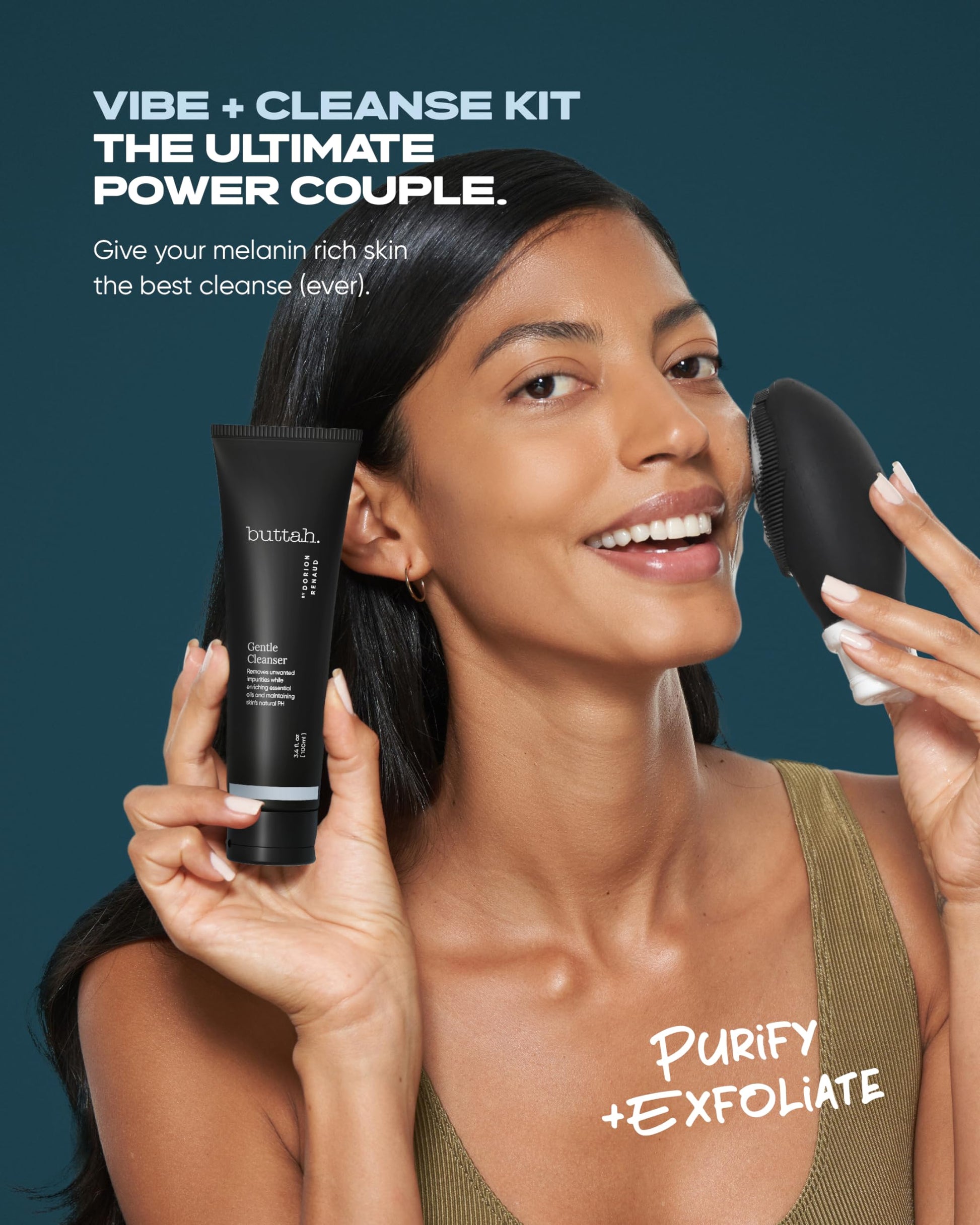 Buttah Skin by Dorion Cleanse + Vibe Brush Kit | Vibe Cleansing Face Brush | Buttah Facial Cleanser 3.4oz | 2-Speed Sonic Pulsating - Gentle Exfoliation - Water Resistant