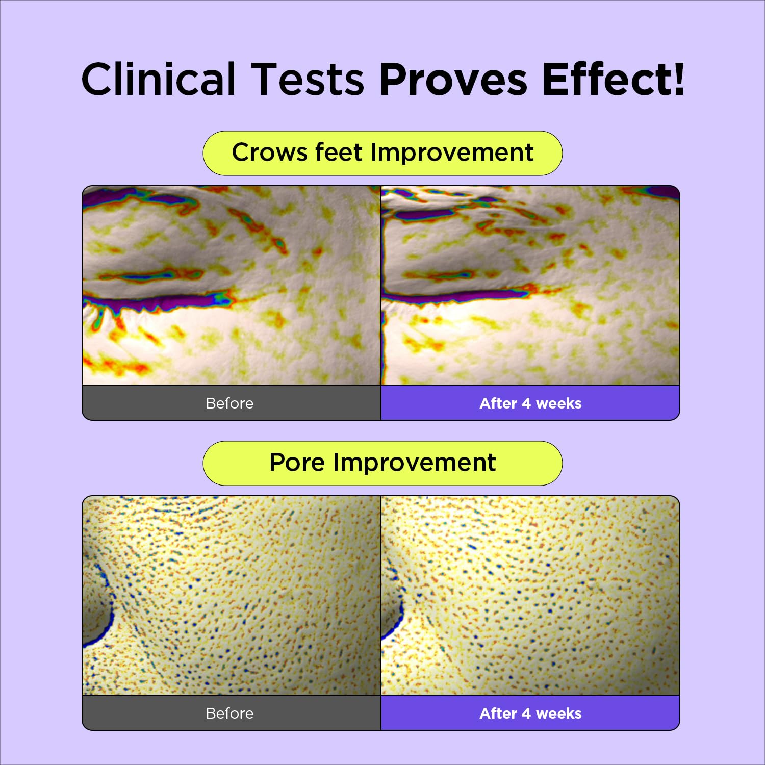 - đ NOTICEABLE RESULTS: â Immediate effect on quantity, size, volume, and depth of the skin pore with one-time use â Improvement on skin moisturizing, eye wrinkle, skin elasticity, face lift (cheek), skin density and skin texture (roughness) with 4 weeks use đFLUORESCENT YELLOW COLOR IS THE NATURAL COLOR OF RETINAL đ
