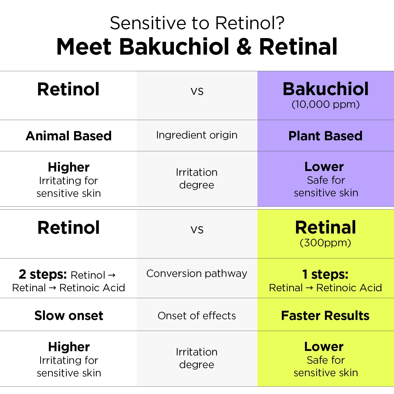 - đNEXT-GEN RETINOL: Formulated with two next-gen retinol alternatives, Bakuchiol (1%) and Retinal (0.03%). Retinal is the perfect alternative to the irritation of Retinol with a higher activity level. Bakuchiol is a plant-based retinol alternative with fewer side effects and is safer to be used for all skin types, making it easy for beginners. Formulated alongside with Hyaluronic Acid and ceramide, it works during your sleep so you can wake up to a visibly smoother, bouncier skin.