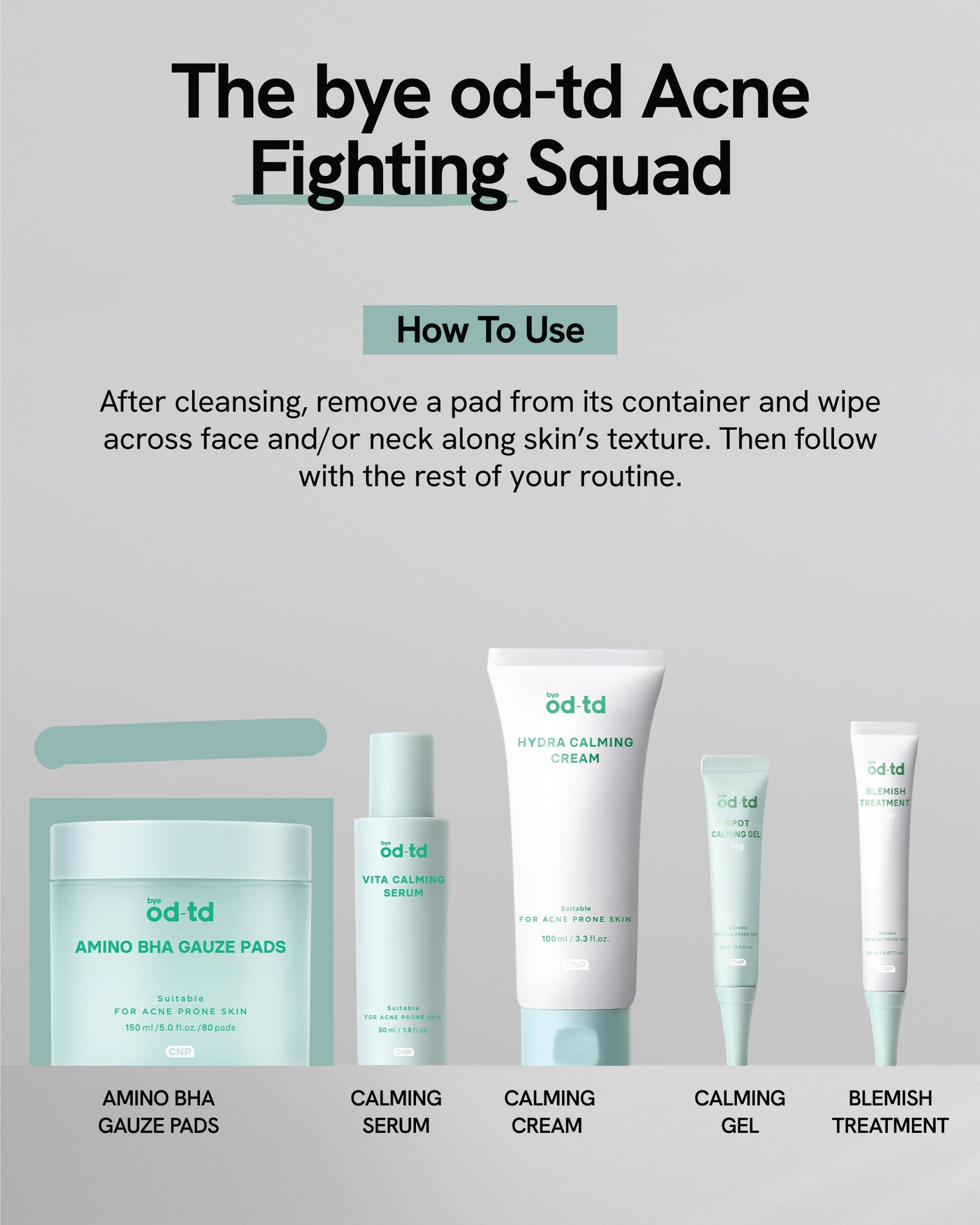 - BYE OD-TD AMINO BHA GAUZE PADS (150ml/5fl oz, 80 counts) - These cotton pads are specially designed to gently exfoliate your skin, helping to improve rough skin texture. Achieve a smoother, more refined complexion effortlessly. These pre-soaked cotton pads also provide deep hydration to your skin from within.