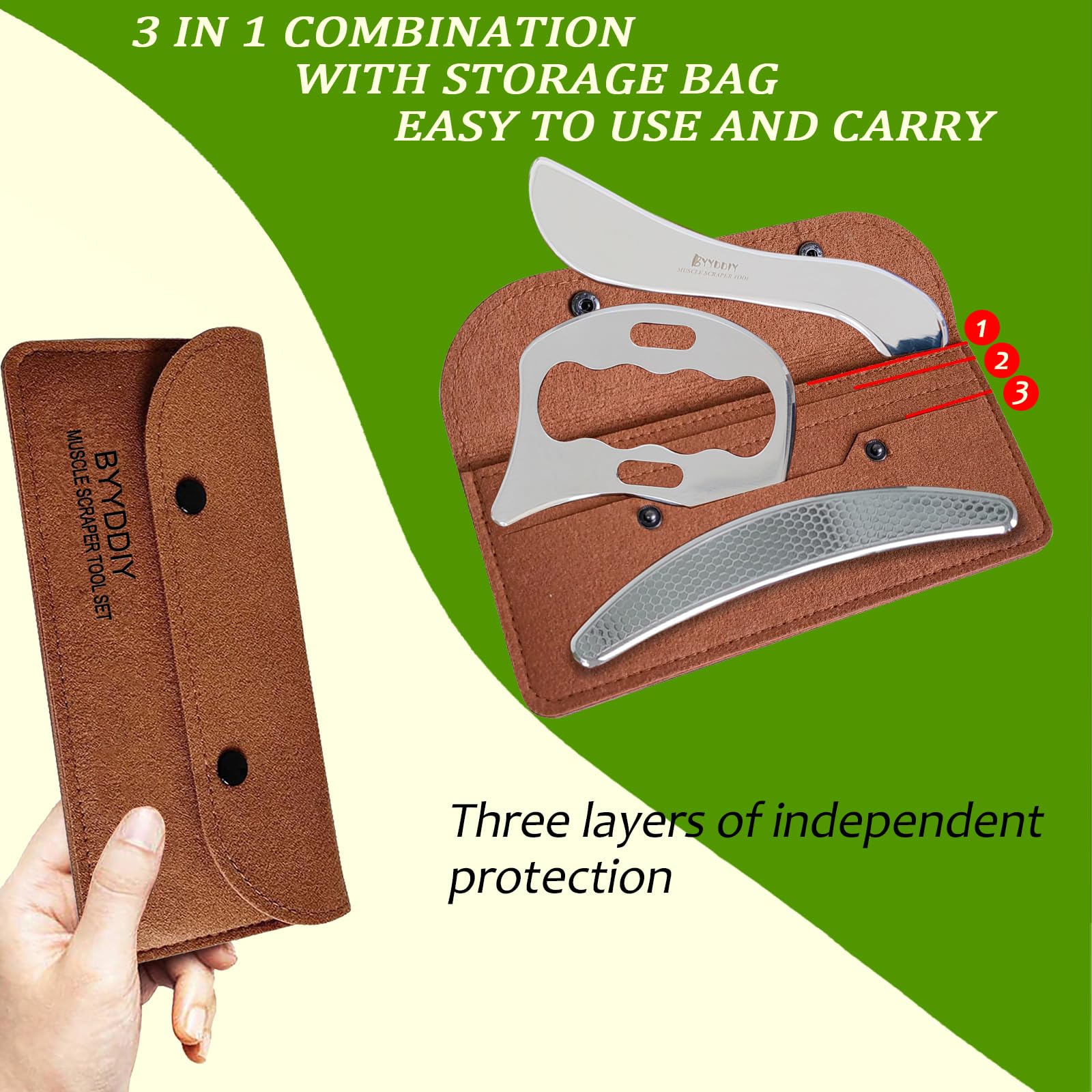 BYYDDIY 3 in 1 Stainless Steel Muscle Scraper Tools Set,Scraping Massage Tools for Physical Therapy,Derma Edge Massage Tool & GuaSha Massage Scraper Tool,IASTM Tools,Guasha Tool for Body