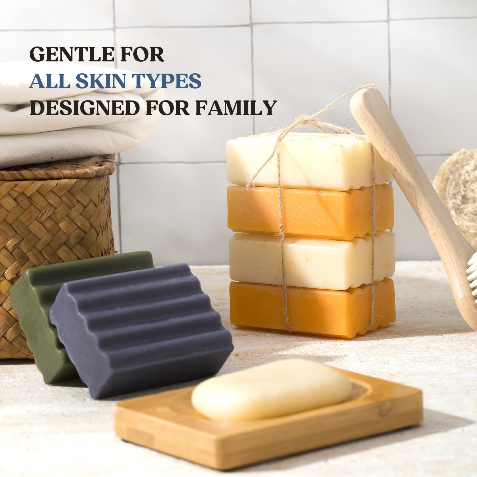 - 4 Unique Scents. Experience the luxury of high-quality essential oils with our 4 distinct soap fragrances. Each natural soap bar offers a unique bathing experience, making it an ideal gift set for men, women, and families. The value pack includes 4 large bars (4x4.2 oz), perfect for daily family use.