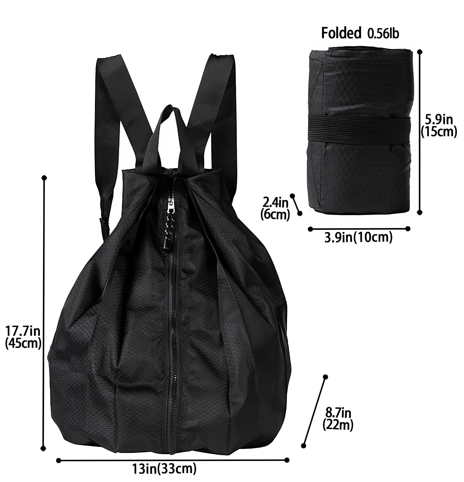 - Ultra-Lightweight Design: Weighing only 0.56 lbs, the backpack measures 12.6 x 8.7 x 16.5 inches when opened. It folds down to a compact size of 5.9 x 2.4 x 3.9 inches, roughly the size of your palm, making it easy to carry in your pocket or luggage—perfect for all travel needs.