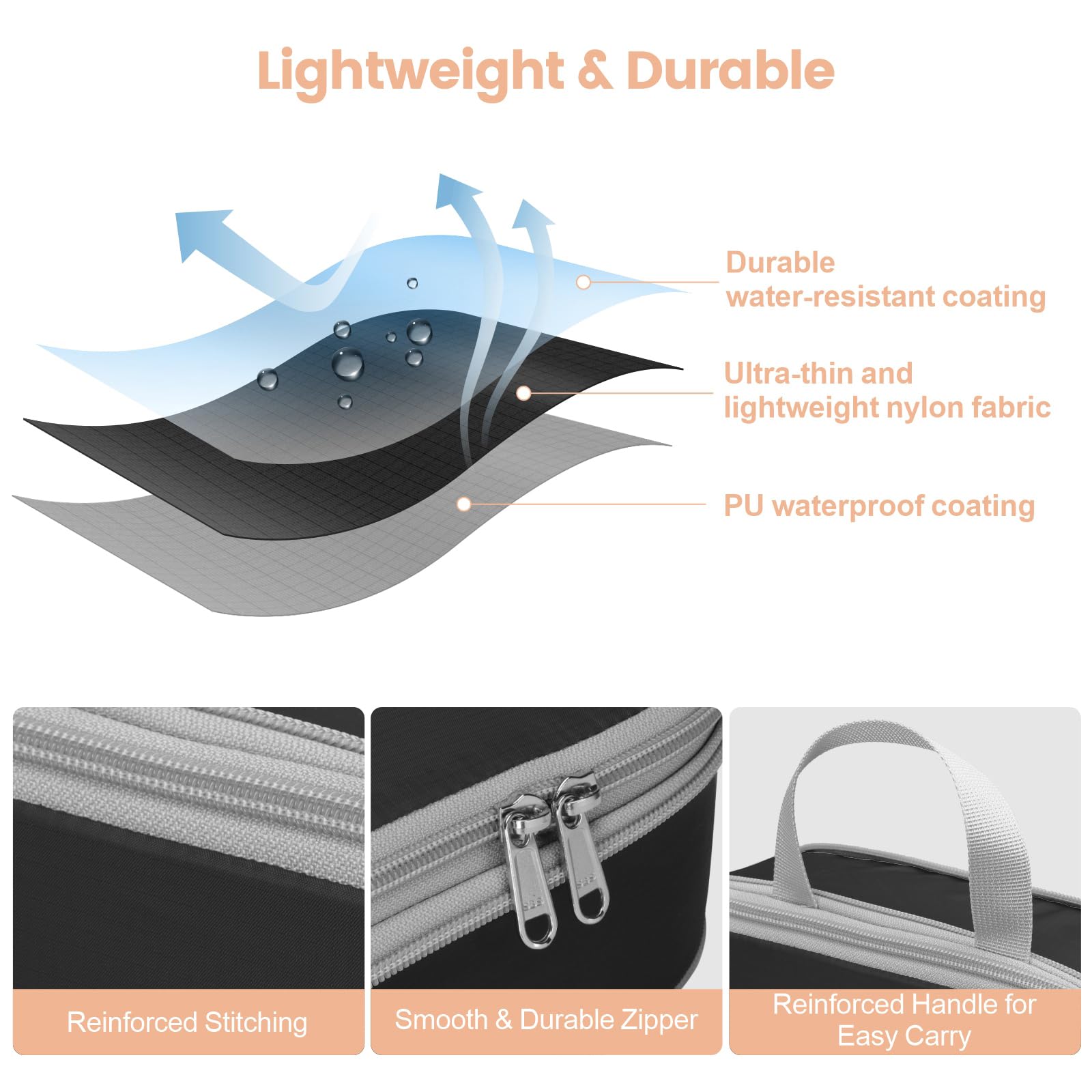 - Sturdy & Lightweight: Made from high-quality nylon for long-lasting use without adding bulk; Water-resistant material of the compression bags for travel protects belongings from spills and dirt; Double zippers ensure smooth operation and secure packing