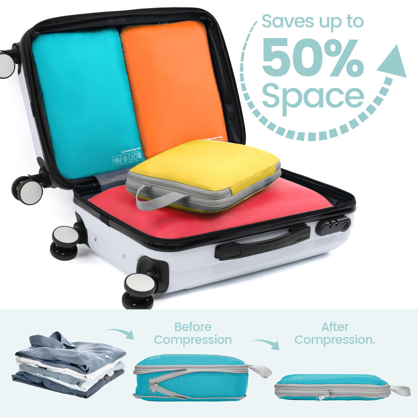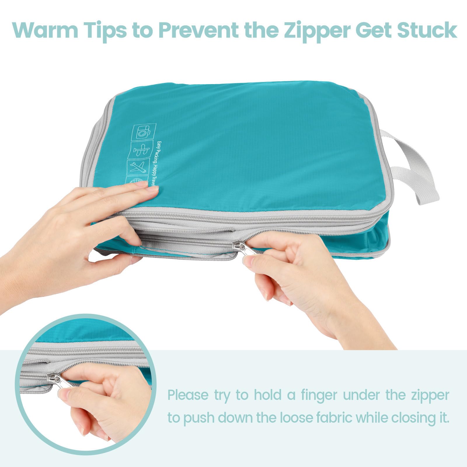 - Pack More in Less Space: Excellent space saving packing cubes for travel to hold more items! The compression zipper design helps save up to 50% storage space, allowing you to fit up to 50% more in the suitcase; it can also compress clothing securely to prevent shifting and wrinkles. Perfect for travelers who want to pack efficiently