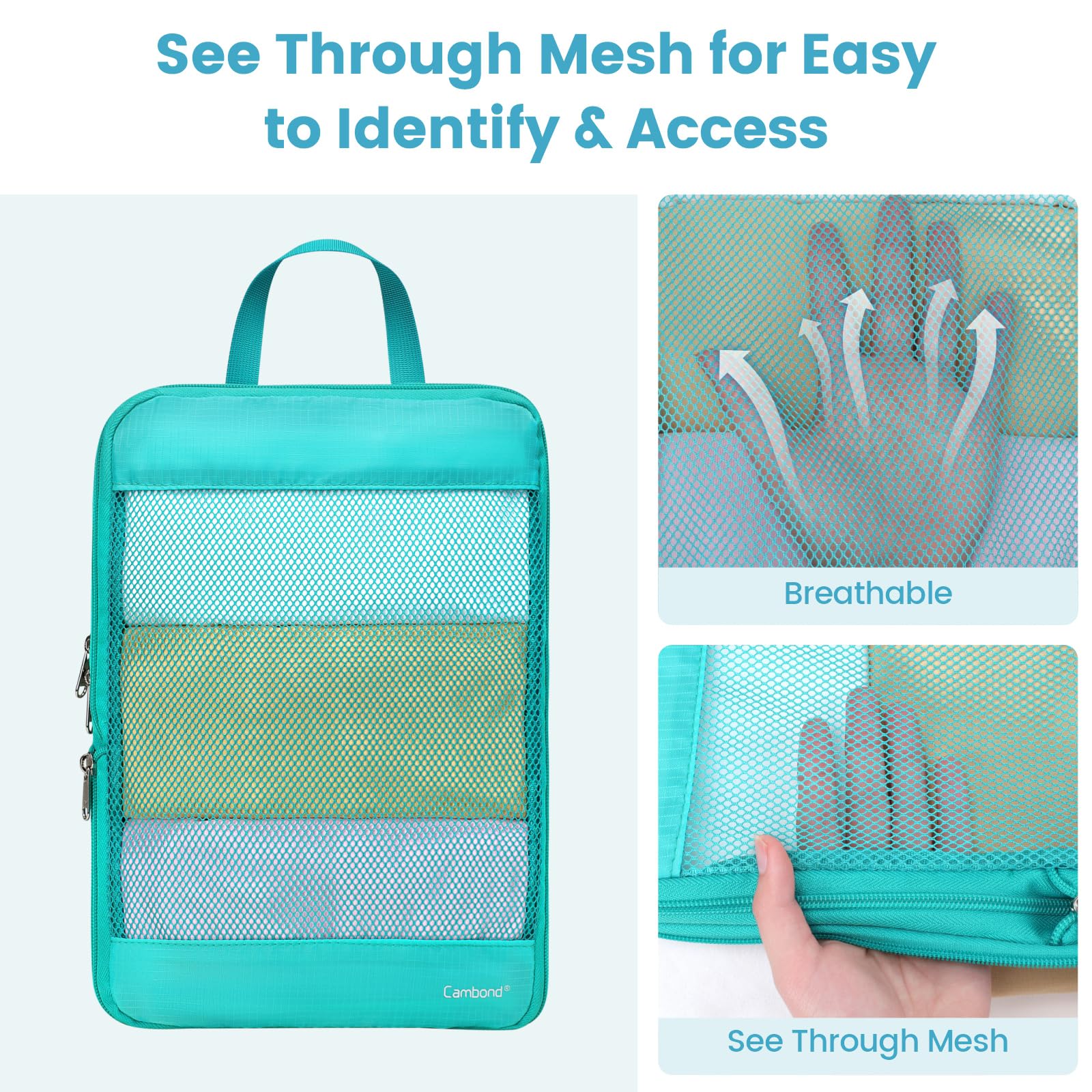 - Easy to Find What You Need: The back of travel packing cubes compression feature a see through mesh, keeping clothes fresh and allowing you to quickly locate items. Besides, TSA view your items easily without opening the cubes and prevent them from scattering or being directly exposed, staying your items organized