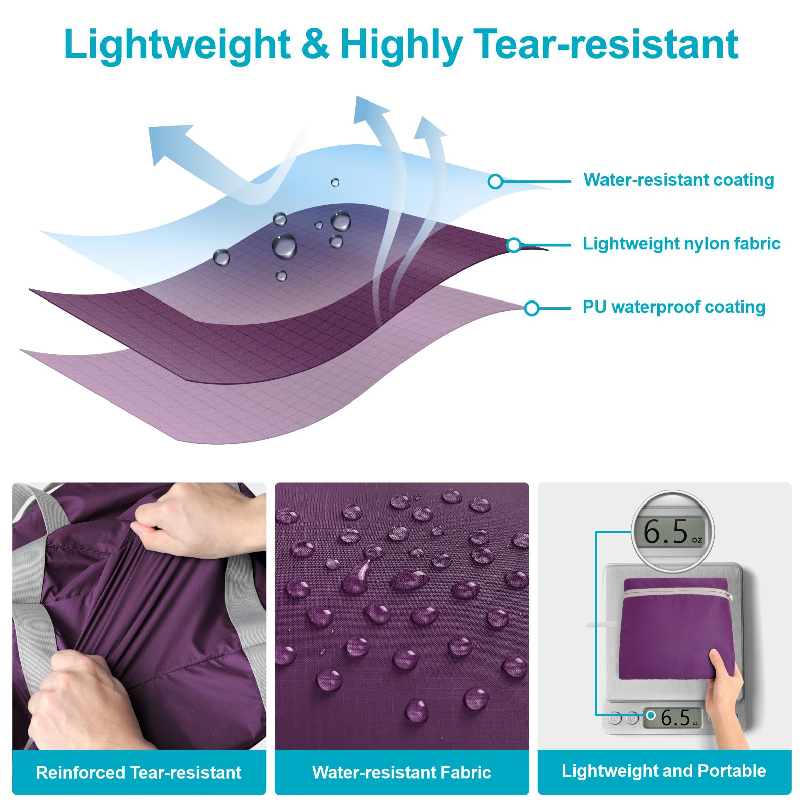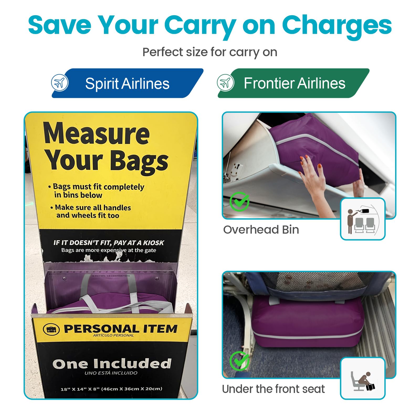 Cambond Spirit Airlines Personal Item Bag 18x14x8-30L Carry on Personal Item Travel Bags for Short Trip, Lightweight Compact Underseat Foldable Travel Duffel Bags, Purple