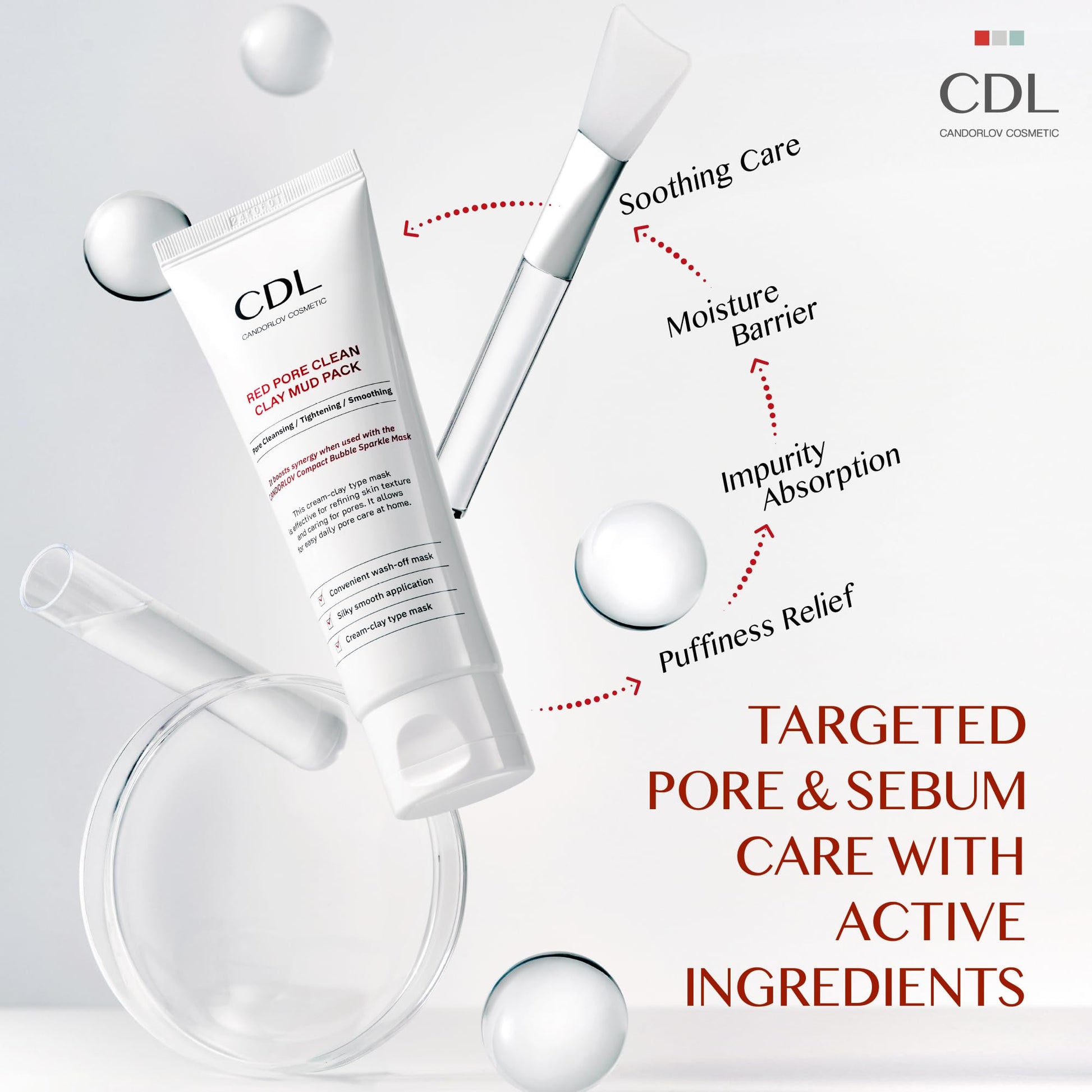 CANDORLOV Red Mud Deep Pore Cleansing Facial Wash Off Mask for Impurities Sebum, For Senstive Skin, Soothing & Cooling Effect, Exforliating Dead Skin Cells, Korean Skin Care, 2.7 oz
