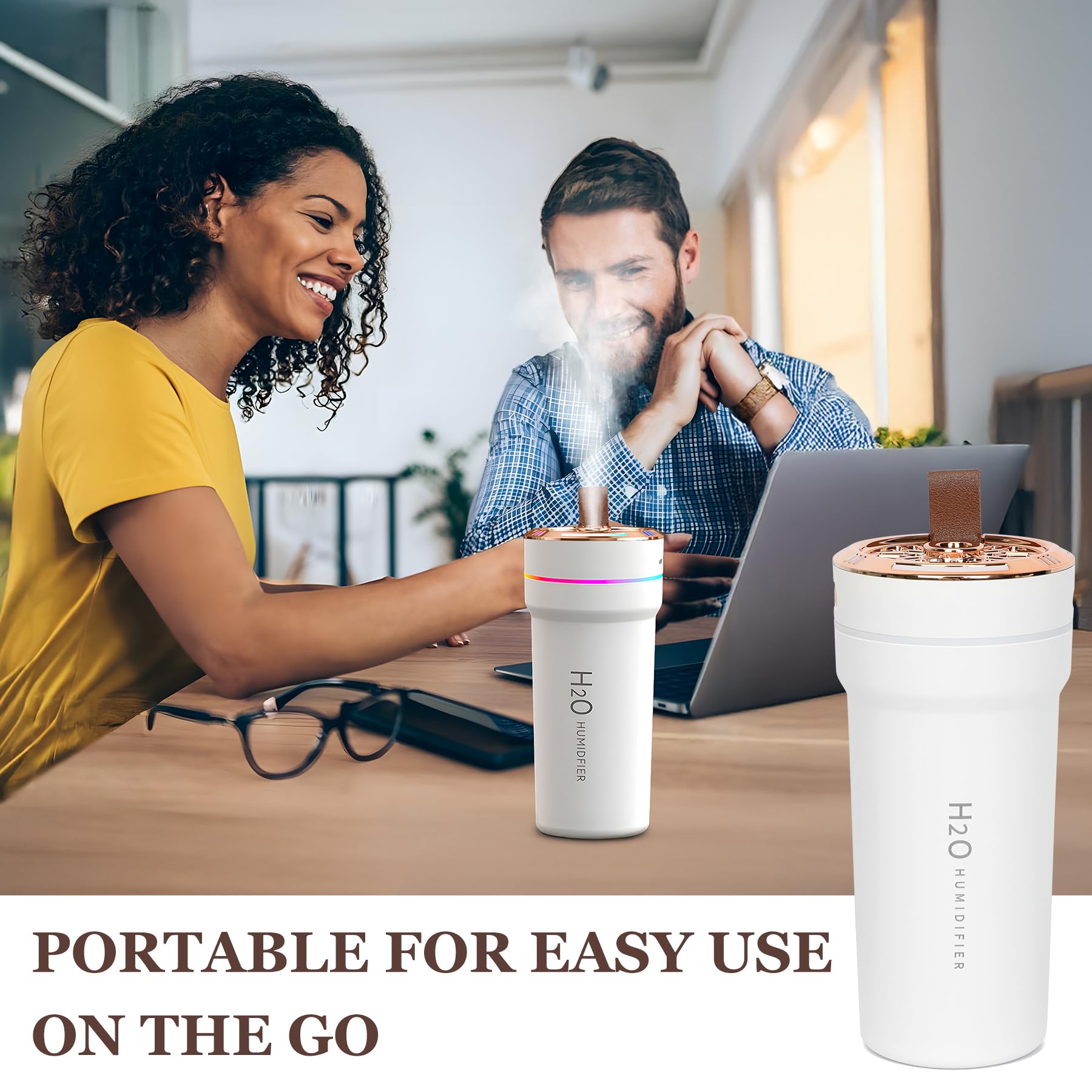 - Compact & Portable Design: This mini humidifier is perfect for cars, small offices, or home spaces. Its lightweight and space-saving design fits easily into cup holders, making it ideal for on-the-go use