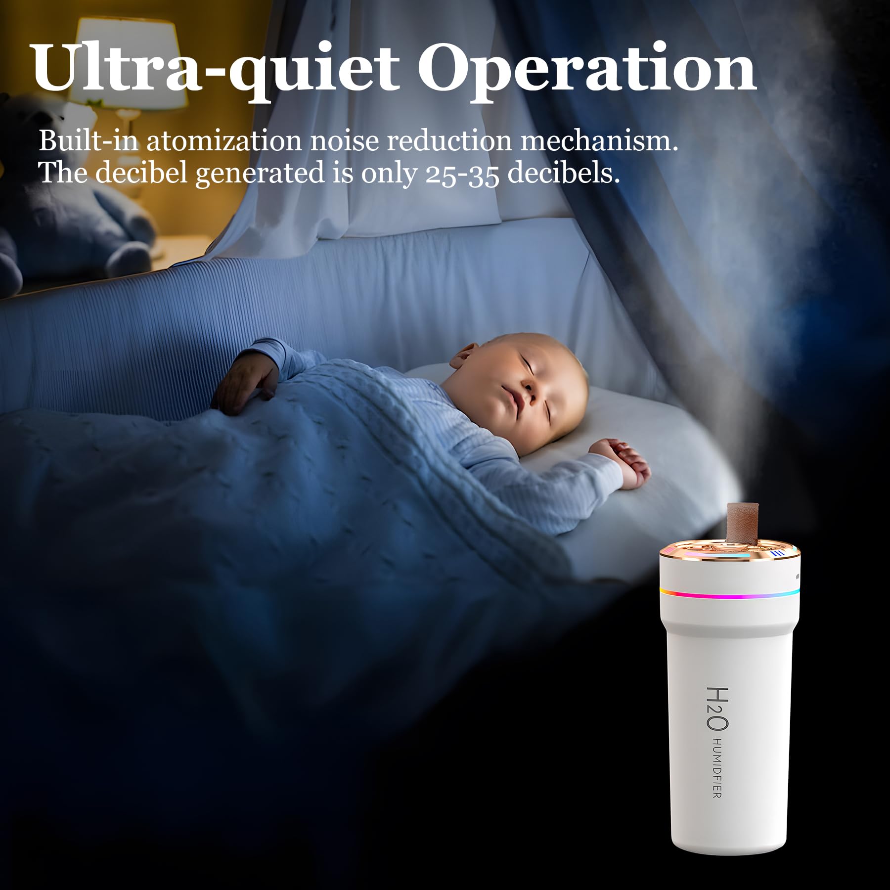 - Whisper-Quiet Operation: Designed with noise reduction technology, this humidifier operates quietly, ensuring a peaceful environment whether you're driving, working, or relaxing