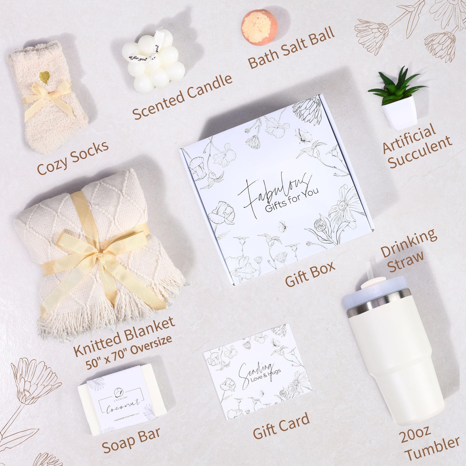 - UNIQUE GIFT SETS: The EXTALOW gift box contains everything she needs to relax and pamper: soaps, scented candles, 20oz insulated water bottle with straw, cozy socks, bath salt balls, 50x70in oversize knitted blanket, artificial succulents, and a thoughtful gift card. These gift baskets for women are designed to bring comfort, pleasure and luxury to her day.