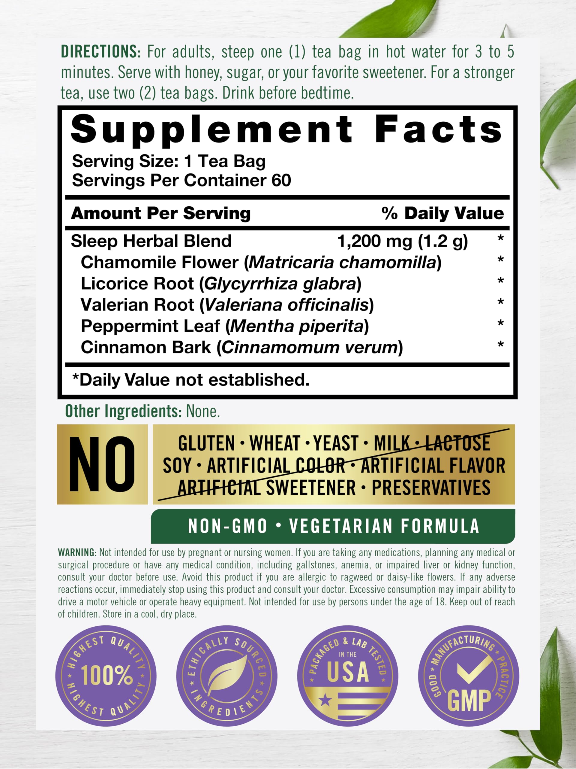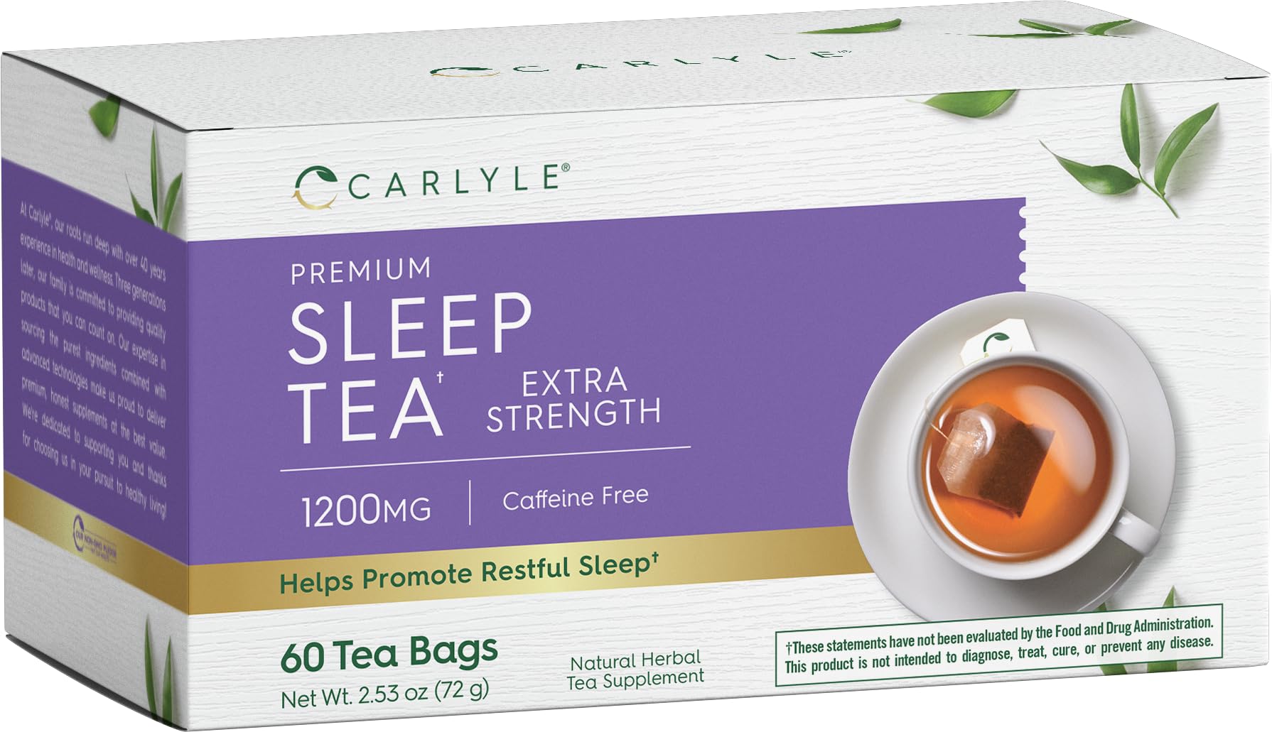 Carlyle Sleep Tea for Bedtime Extra Strength | 60 Bags | Caffeine Free | Herbal Blend with Valerian Root | Vegetarian, Non-GMO & Gluten Free