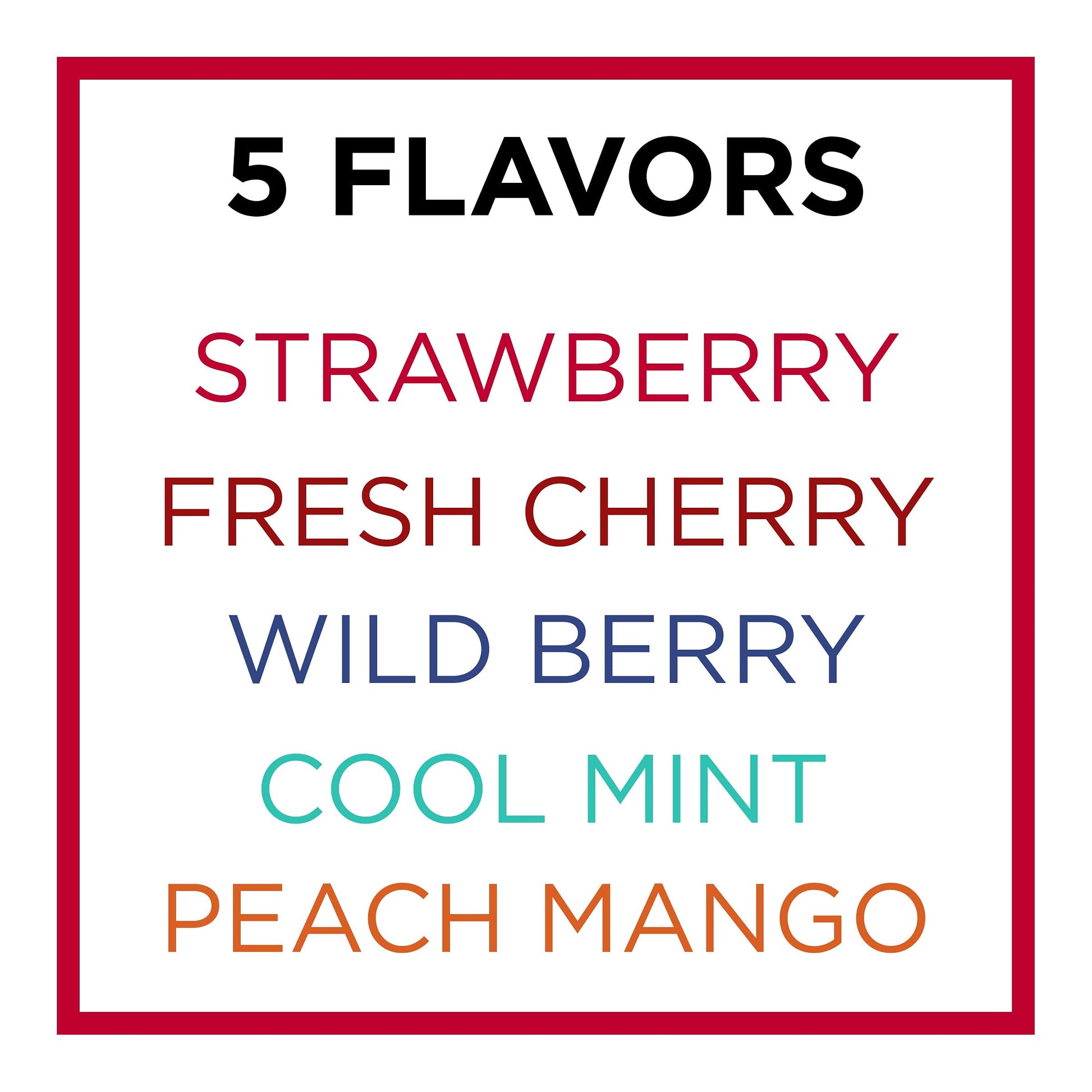 - Fun lip balm multipack with five flavors includes one Strawberry, Cool Mint, Wild Berry, Peach Mango and Fresh Cherry Carmex tube to give you variety and are a great lip balm for stocking stuffers, goodie bags or party favors