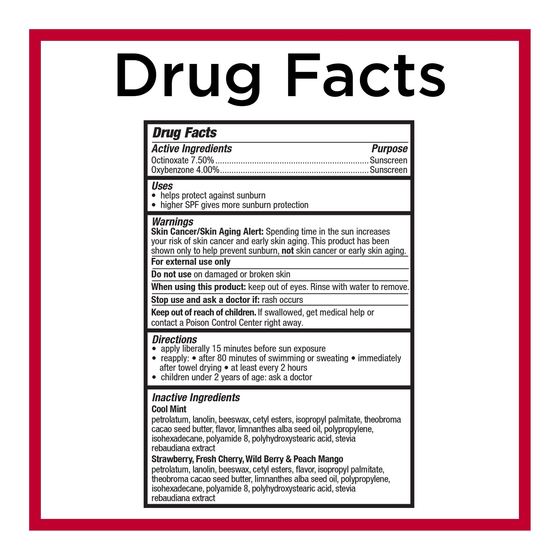 - Water resistant for up to 80 minutes, each tube of this flavored lip balm with sunscreen helps keep your lips protected while you swim or stay active outdoors