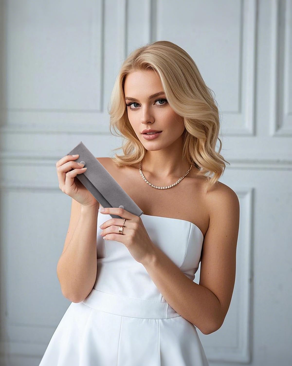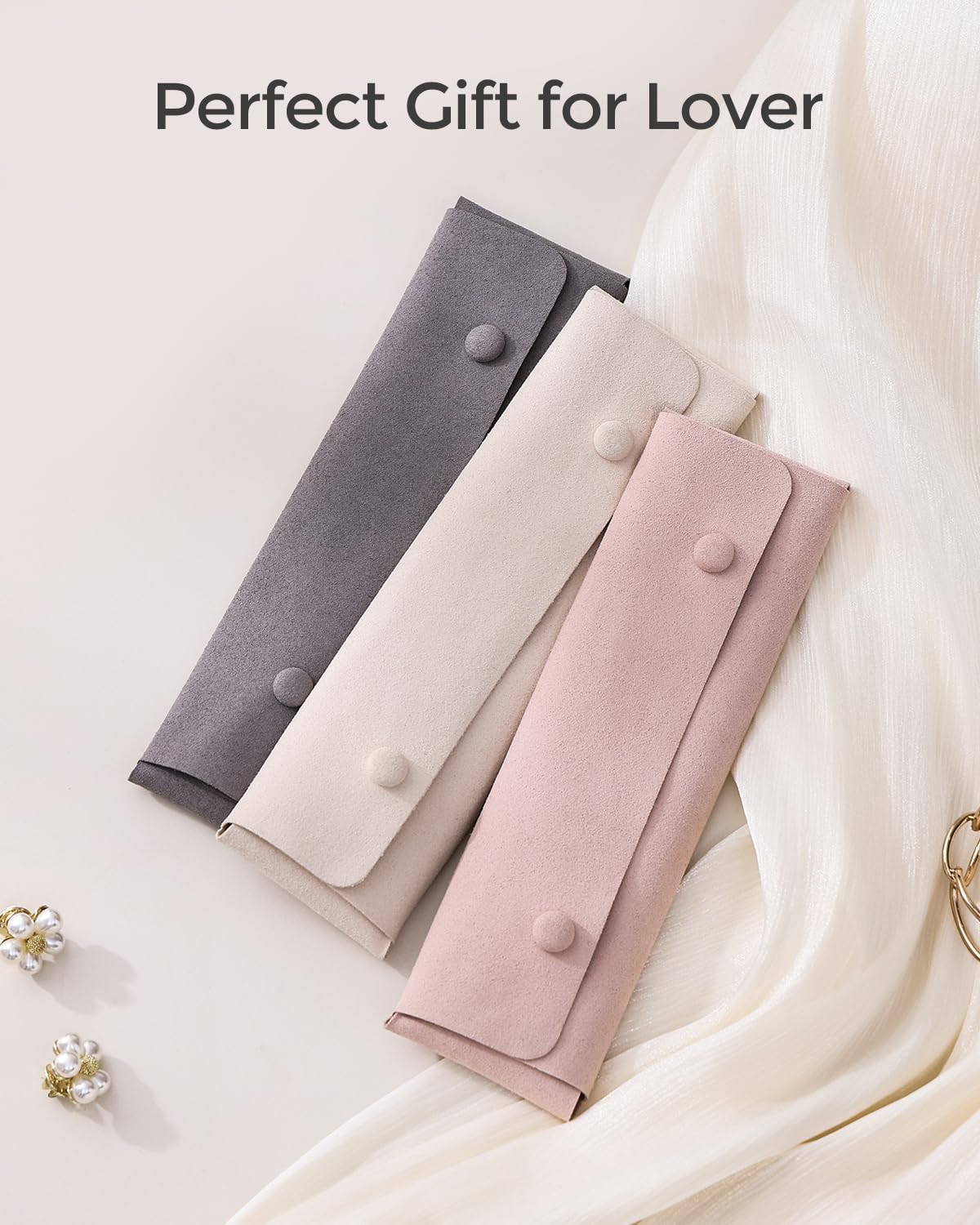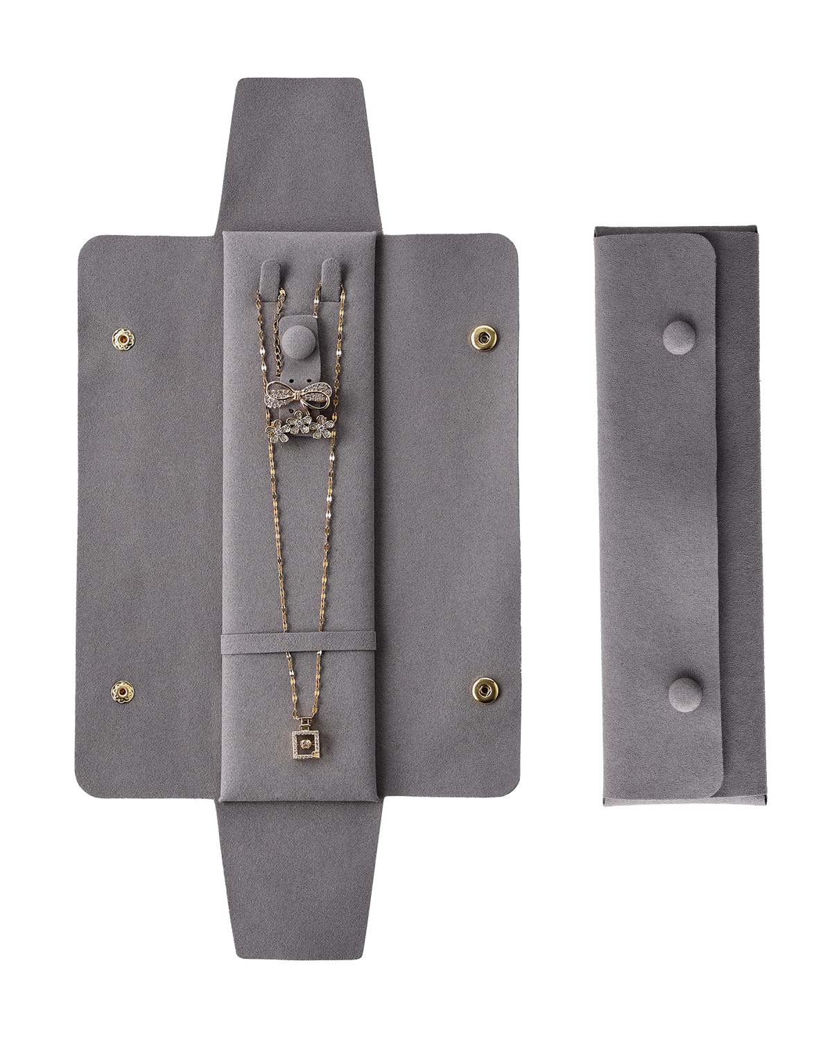 CASEGRACE Velvet Travel Jewelry Roll Bag Organizer for Necklaces, Rings, Earrings, Retaining Buckle, Anti-tangle, Everyday Storage Bag (Gray)