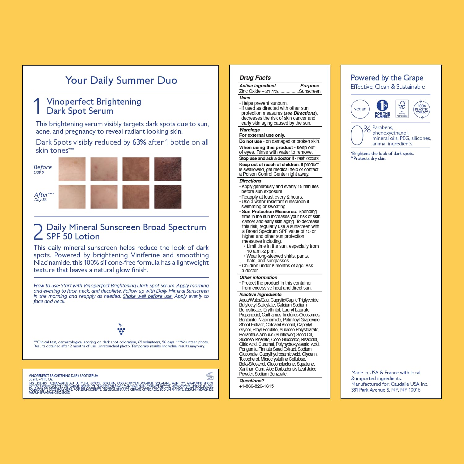 Caudalie Vinoperfect Dark Spot Brightening Serum & Vinosun Daily Mineral Sunscreen for Face, Broad Spectrum SPF 50 Lotion - Skin Care Set