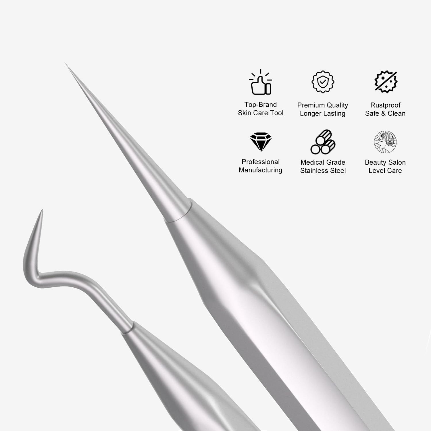 - Precision & Comfort: Ergonomic handle offers a comfortable grip during prolonged use and and easy maneuverability. Each precision tool is designed to target stubborn blackheads effortlessly, providing clearer, smoother skin