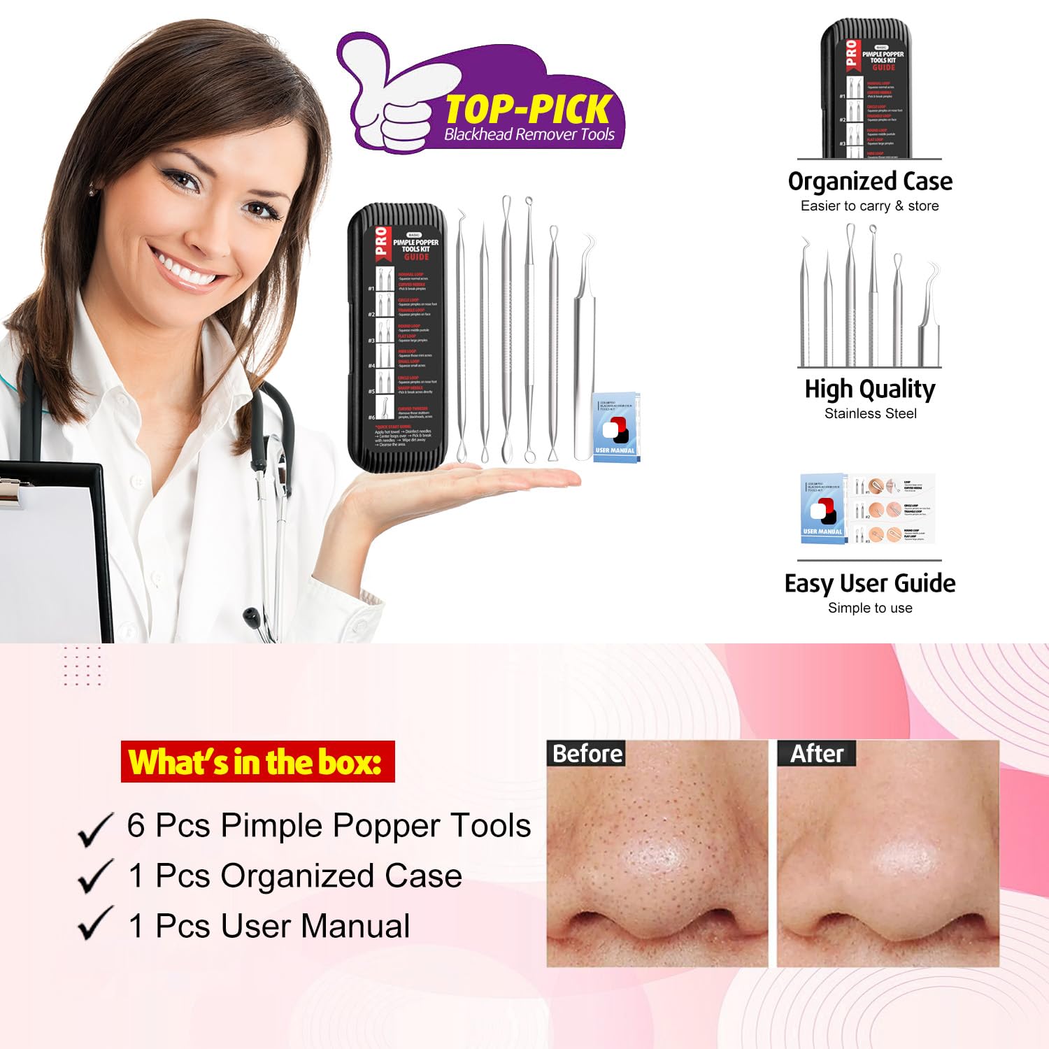 - Pro-Grade Skincare: Elevate your routine with professional 6 pack blackhead remover tools. Perfect for girls, man, and teens to achieve a clearer, more radiant complexion effortlessly