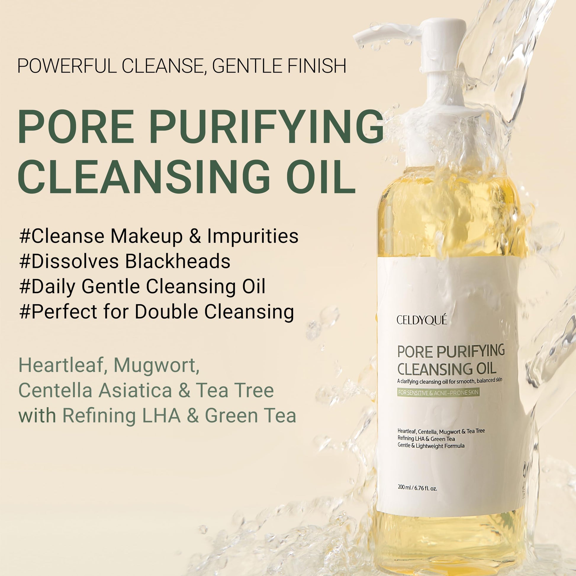 CELDYQUE Pore Purifying Cleansing Oil β Korean Face Wash with Centella, Tea Tree, Green Tea & LHA β Gentle Makeup Remover for Sensitive, Acne-Prone Skin, Deep Pore Cleanser, 6.76 fl oz