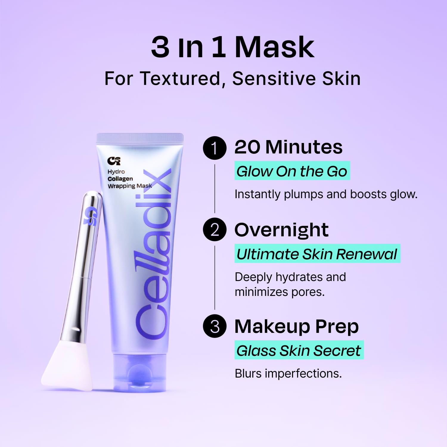 Celladix Hydro Collagen Wrapping Mask – Overnight Hydrating & Firming Peel-Off Face Mask, Vegan Collagen, Niacinamide–Pore Minimizing & Radiance Boost, Korean Skincare, 2.53 Fl Oz (Pack Only)