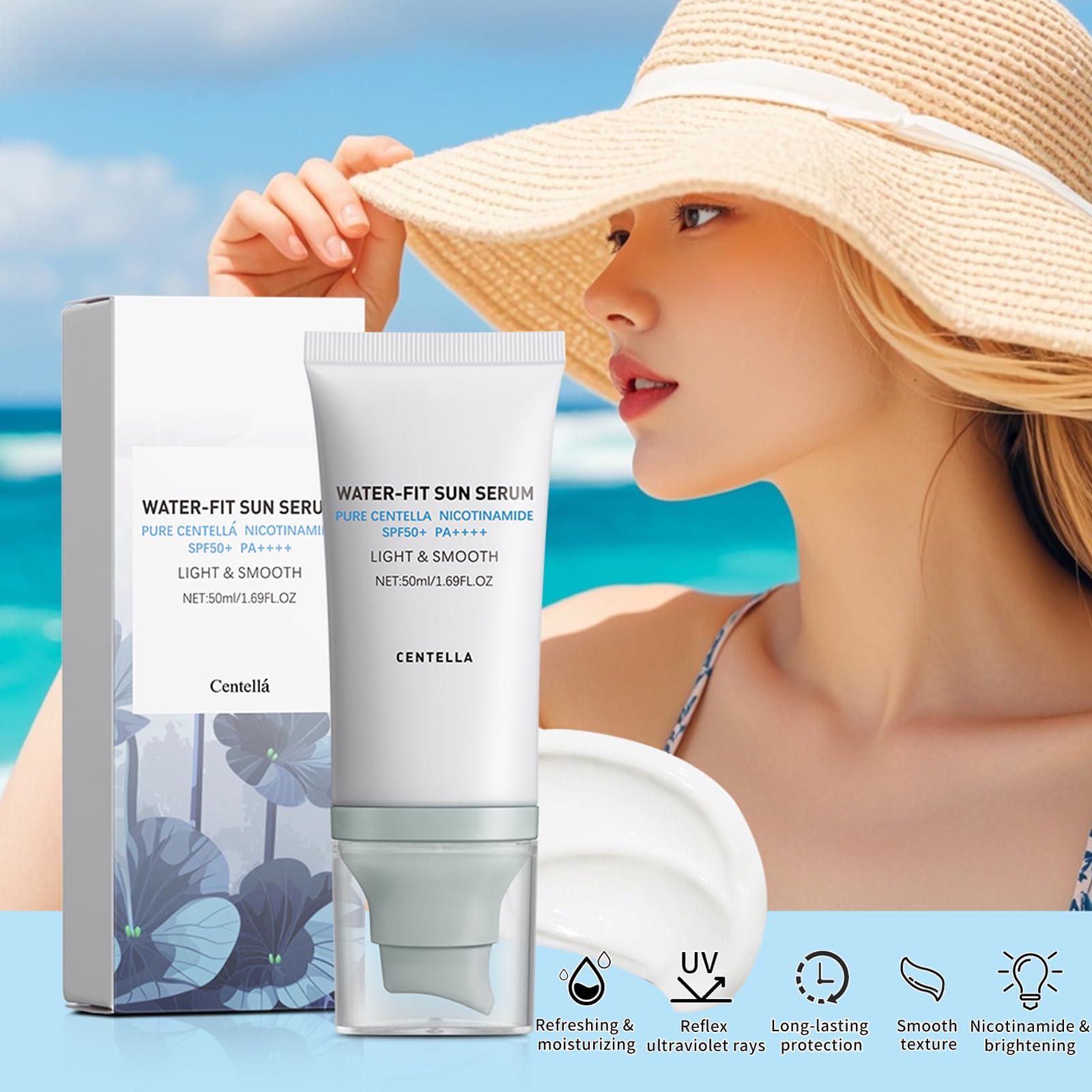 Centella Sunscreen SPF 50 PA++++, Korean Sunscreen Water-Fit Sun Serum, Face Sun Screen Long-Lasting, Hydrating & Non-Greasy Sun Protection for Sensitive Skin, Reef-Safe & Fast-Absorbing
