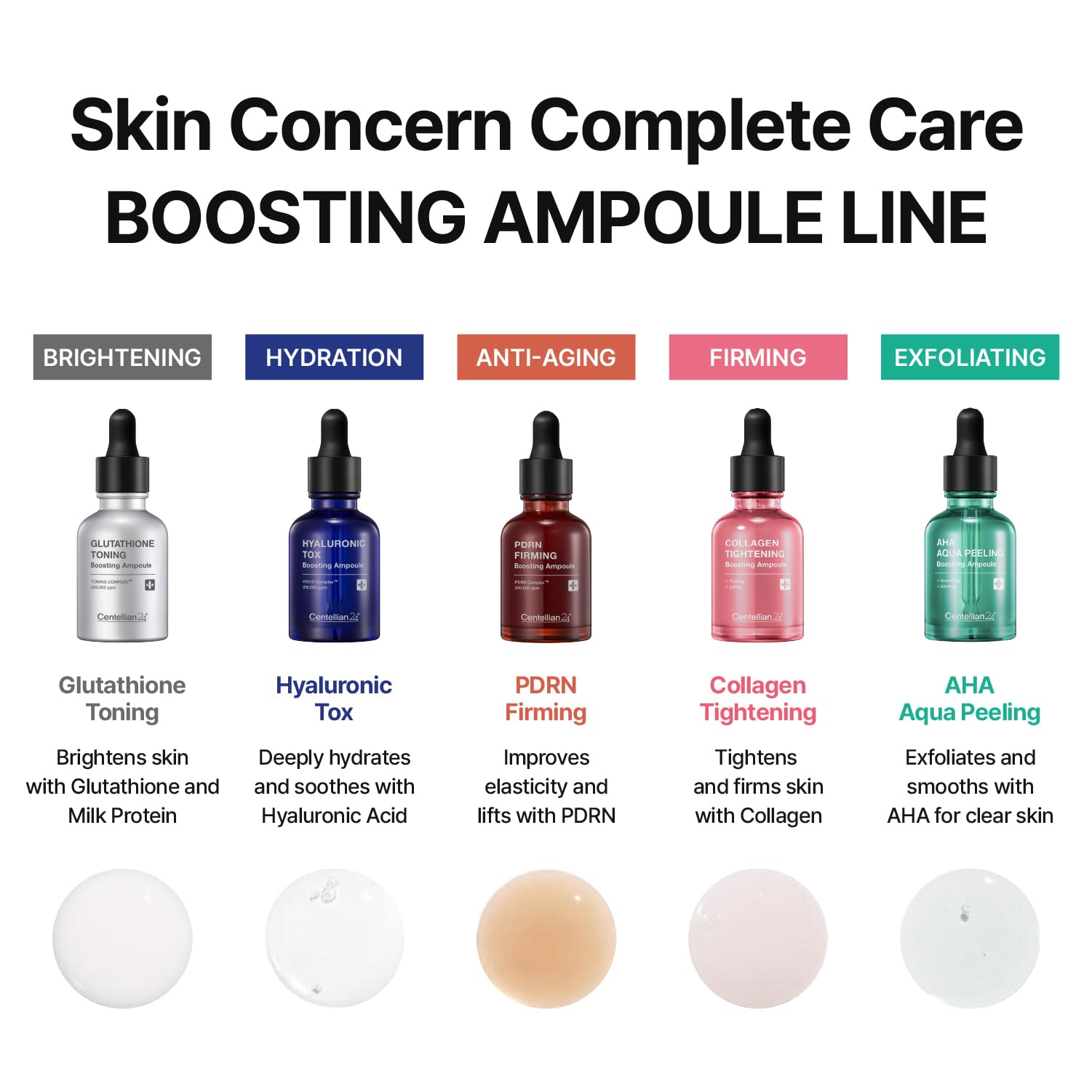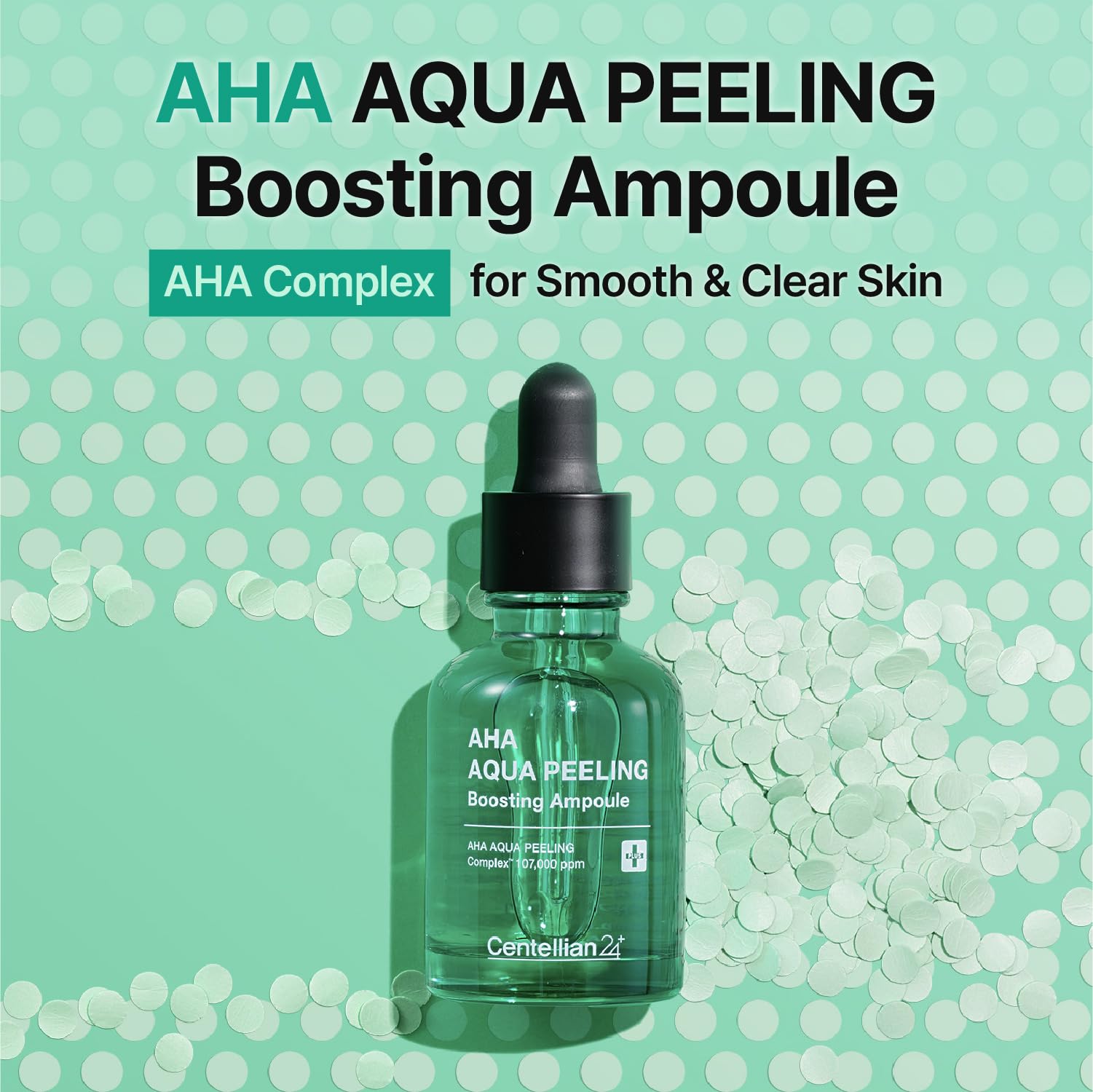 - CENTELLIAN 24 AHA AQUA PEELING BOOSTING AMPOULE (30ml/1.01fl oz) - EXFOLIATING & HYDRATING SERUM – A dual-action chemical exfoliator that gently removes impurities while maintaining moisture balance. Formulated with AHA Complex, this watery ampoule smooths rough texture, refines pores, and promotes a healthier-looking complexion without irritation.