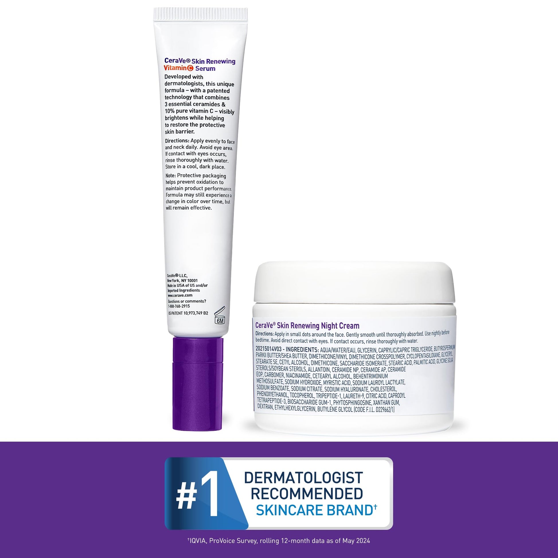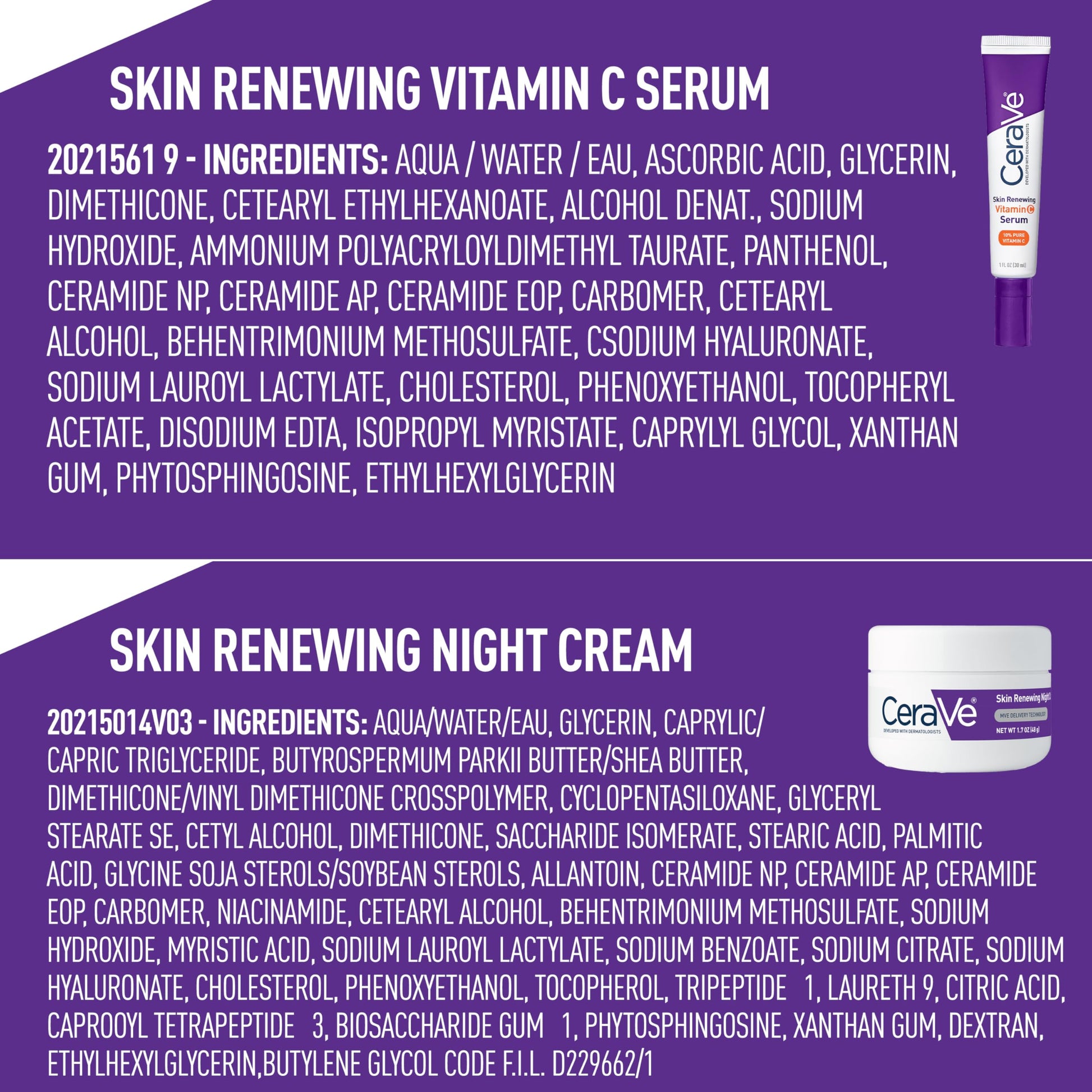 - [ FACE SERUM & HYDRATING NIGHT FACE CREAM FOR HEALTHY AGING SKIN ] Contains an 1oz full size CeraVe Skin Renewing Vitamin C Serum and an 1.7oz full size CeraVe Skin Renewing Night Cream.