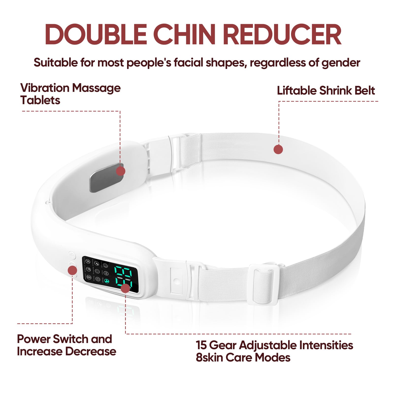 - 8 Modes & 15 Intensity Levels – Customize your experience with 5 light settings and heating (45±5°C) to target double chin. Choose the perfect mode for your needs.