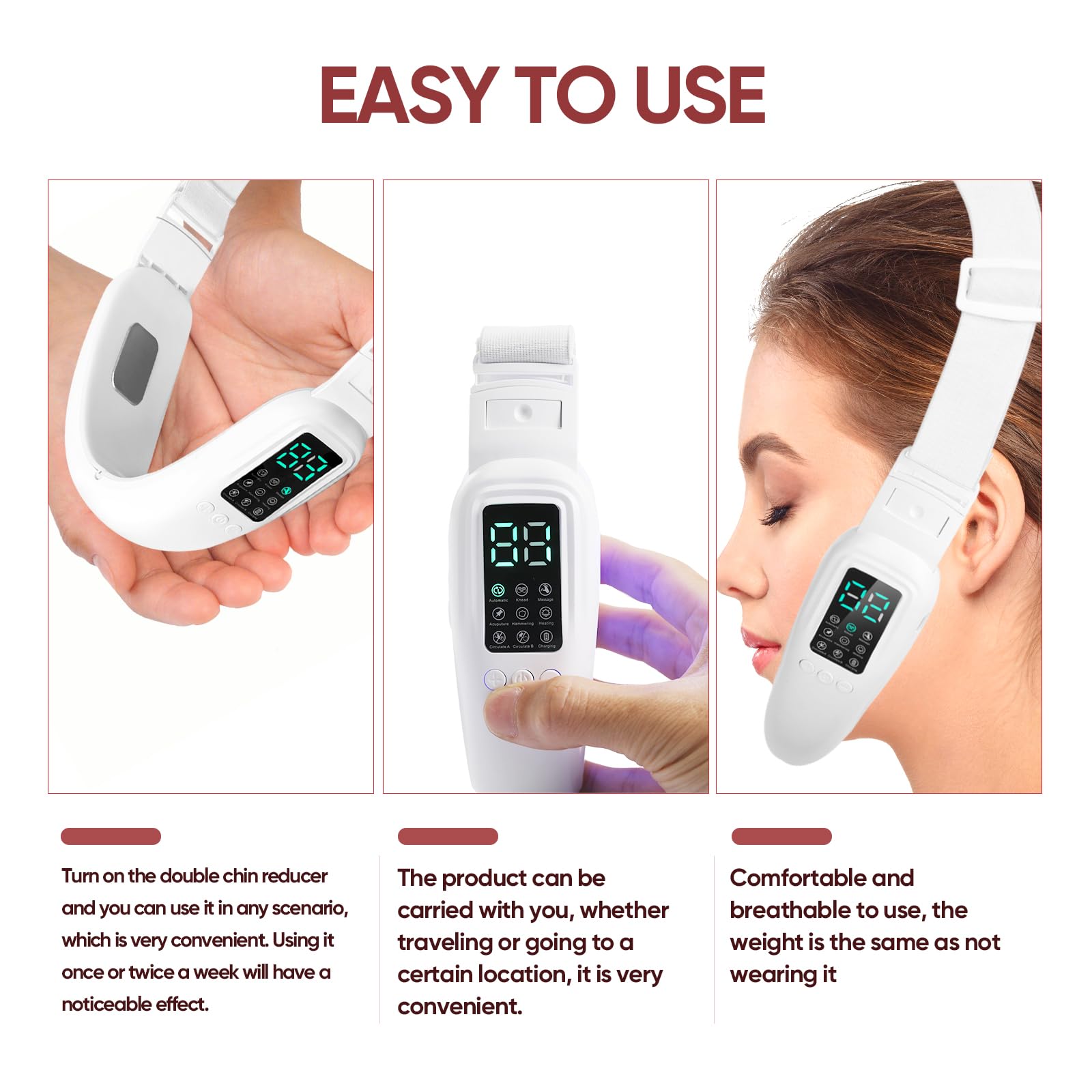 - Comfortable & Ergonomic Design – Enjoy superior comfort with our foldable V-face machine, designed to fit most face shapes. The adjustable head strap ensures a perfect fit for all head sizes, making it ideal for beauty lovers.