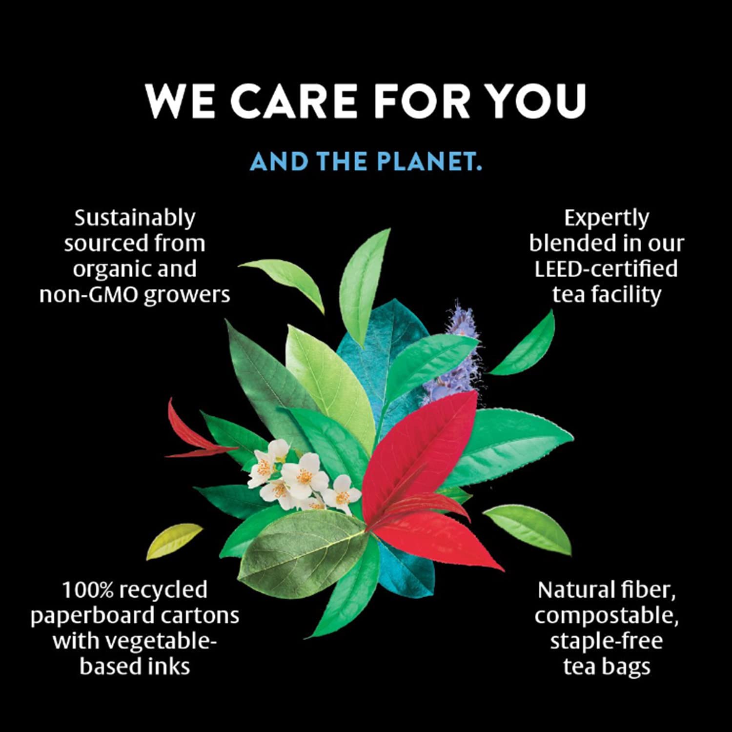 - We Choose to Care for the Planet: Proud to be a B Corp*, our organic teas are individually packaged in natural fiber, compostable tea bags and then packed into cartons made from 100% recycled paperboard. Our teas are expertly blended in our LEED-certified tea facility.