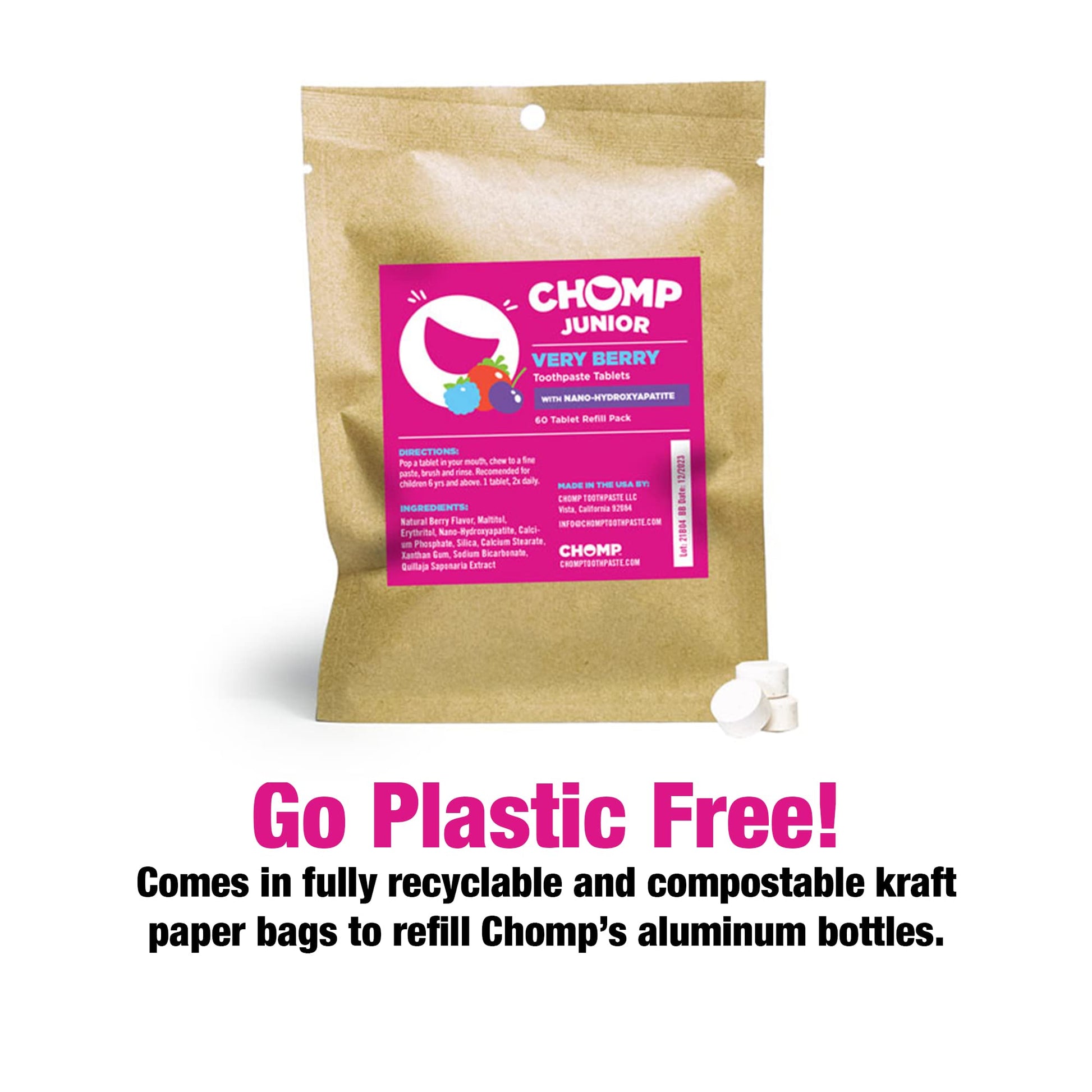 Chomp Junior Very Berry Toothpaste Tablets with Nano Hydroxyapatite Refill