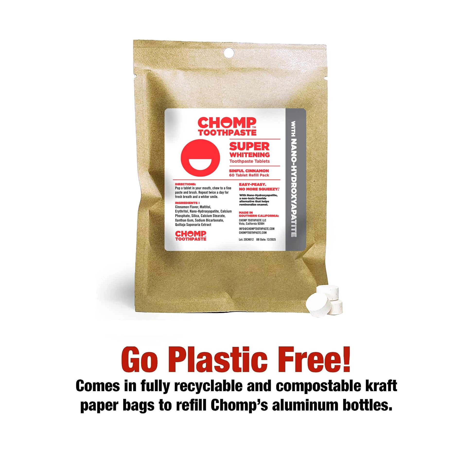 Chomp Super Whitening Cinnamon Toothpaste Tablets with Nano Hydroxyapatite Refill
