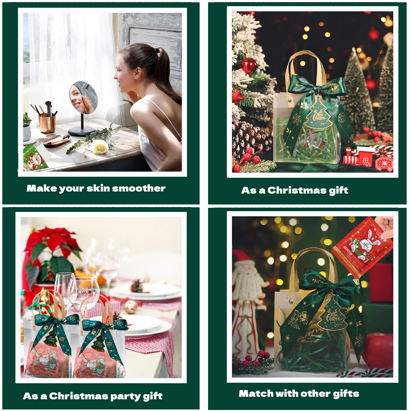 - Festive Party Favors Set: This 20 pack christmas-themed package contains a variety of facial sheet masks for different skincare needs, The packaging bag with a green bow is beautifully packaged.