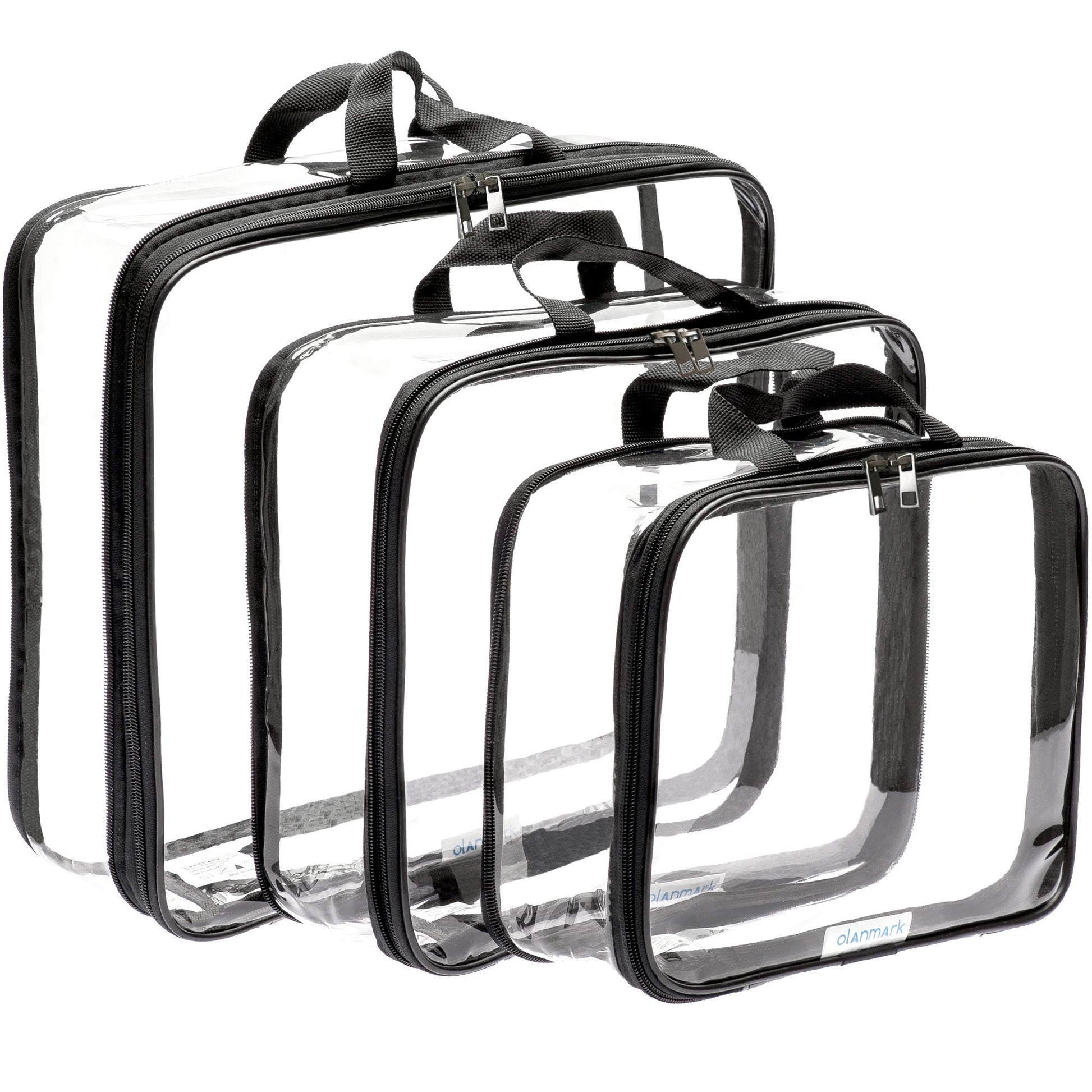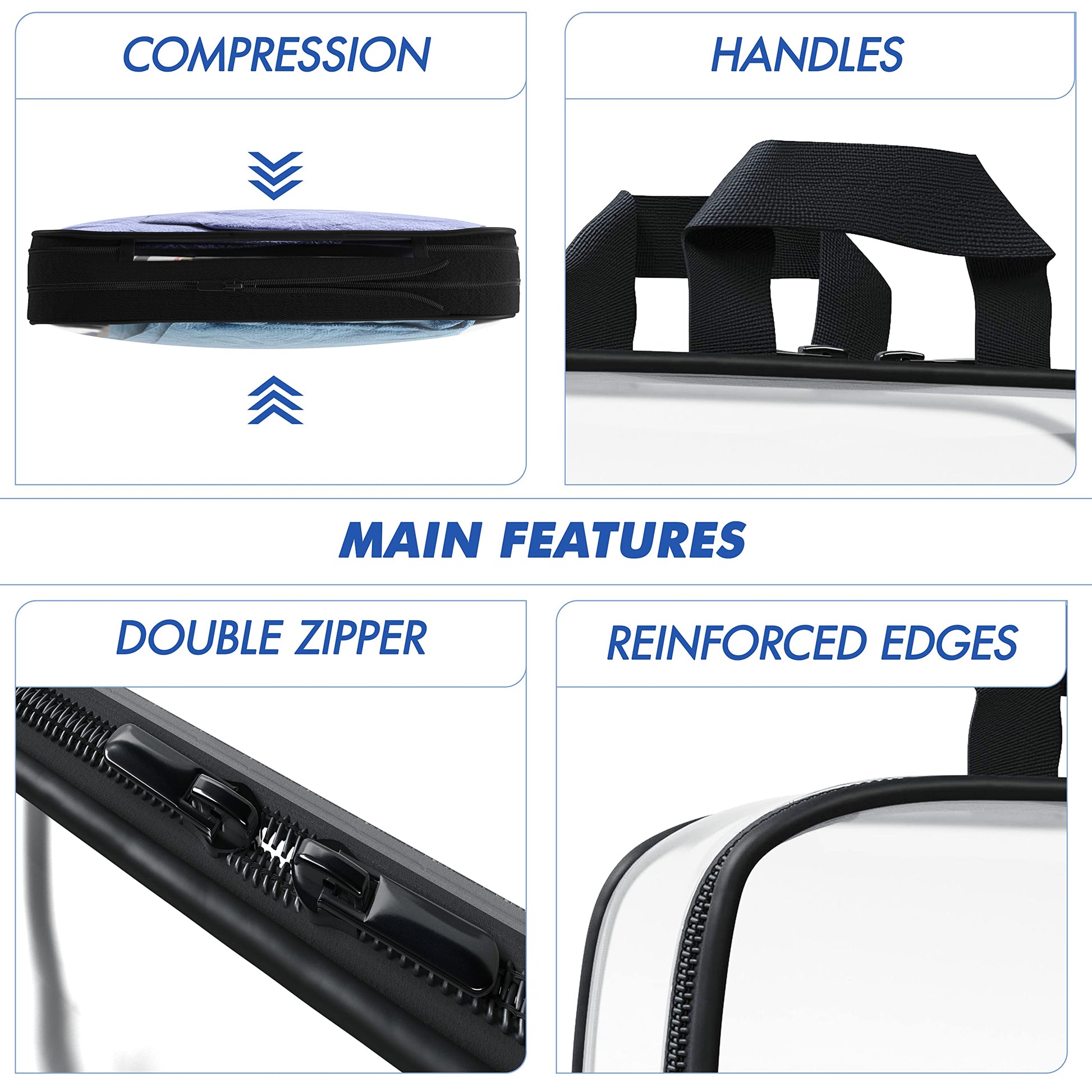 Clear Compression Packing Cubes 3 Set - Large See-Through Plastic Suitcase Bags for Travel - Luggage Compressable Organizers - Transparent PVC Collapsible Cosmetic Bag for Backpack Black