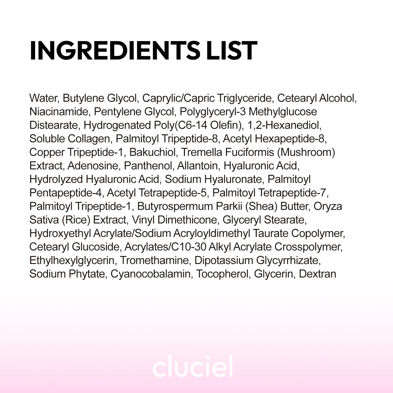 cluciel Collagen Peptide Cream I Moisturizer with Collagen, 7 Peptides, Niacinamide, Blemish Relief Care, Repairs Skin Barrier, Boosts Elasticity, 24h Glow & Plumped Skin (50ml / 1.69 fl.oz)