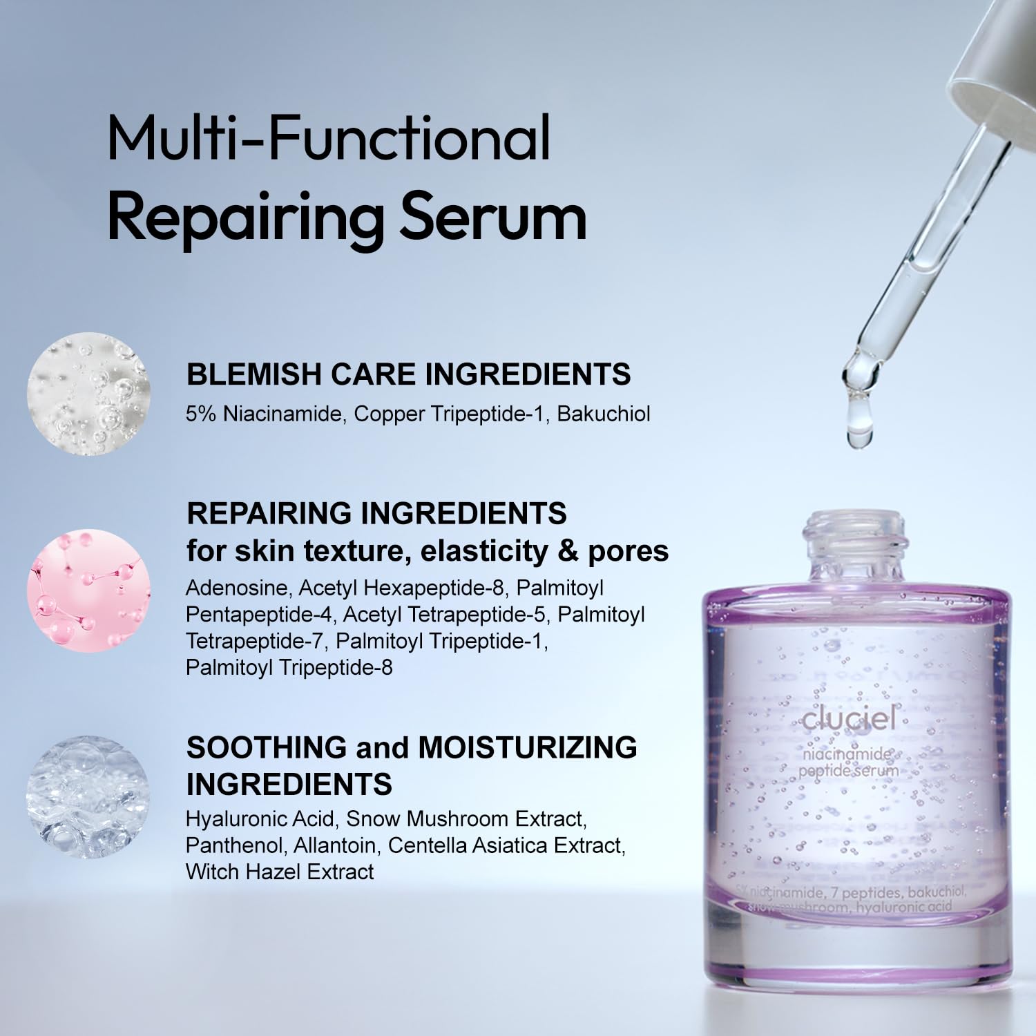 cluciel Niacinamide Peptide Serum I Repairing Serum, Targets Dullness, Dark Spots, Hyperpigmentation, Blemishes, Pore Care, Korean Glass skin (50ml / 1.69 fl.oz)