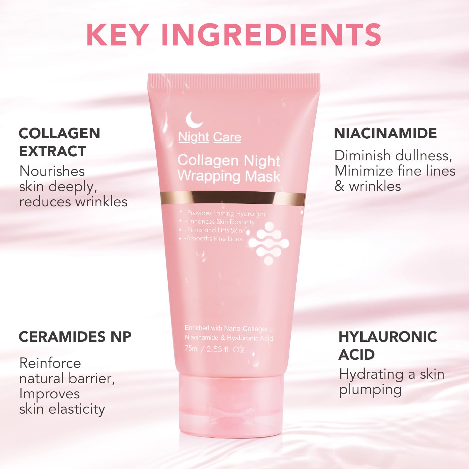 - HYDRATING AND MOISTURIZING - Collagen overnight face mask can form a collagen film to lock in skin moisture, which can keep the skin hydrated all night and reduce dryness and dehydration.