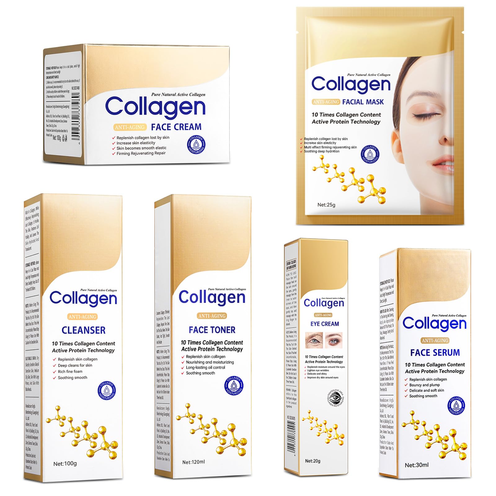 - Collagen Skin Care Set: The skincare set enriched with collagen ingredients, which moisturize your skin, replenish your skin with collagen and water. It also locks in moisture and restores skin's elasticity and vitality for a more hydrated and smoother skin