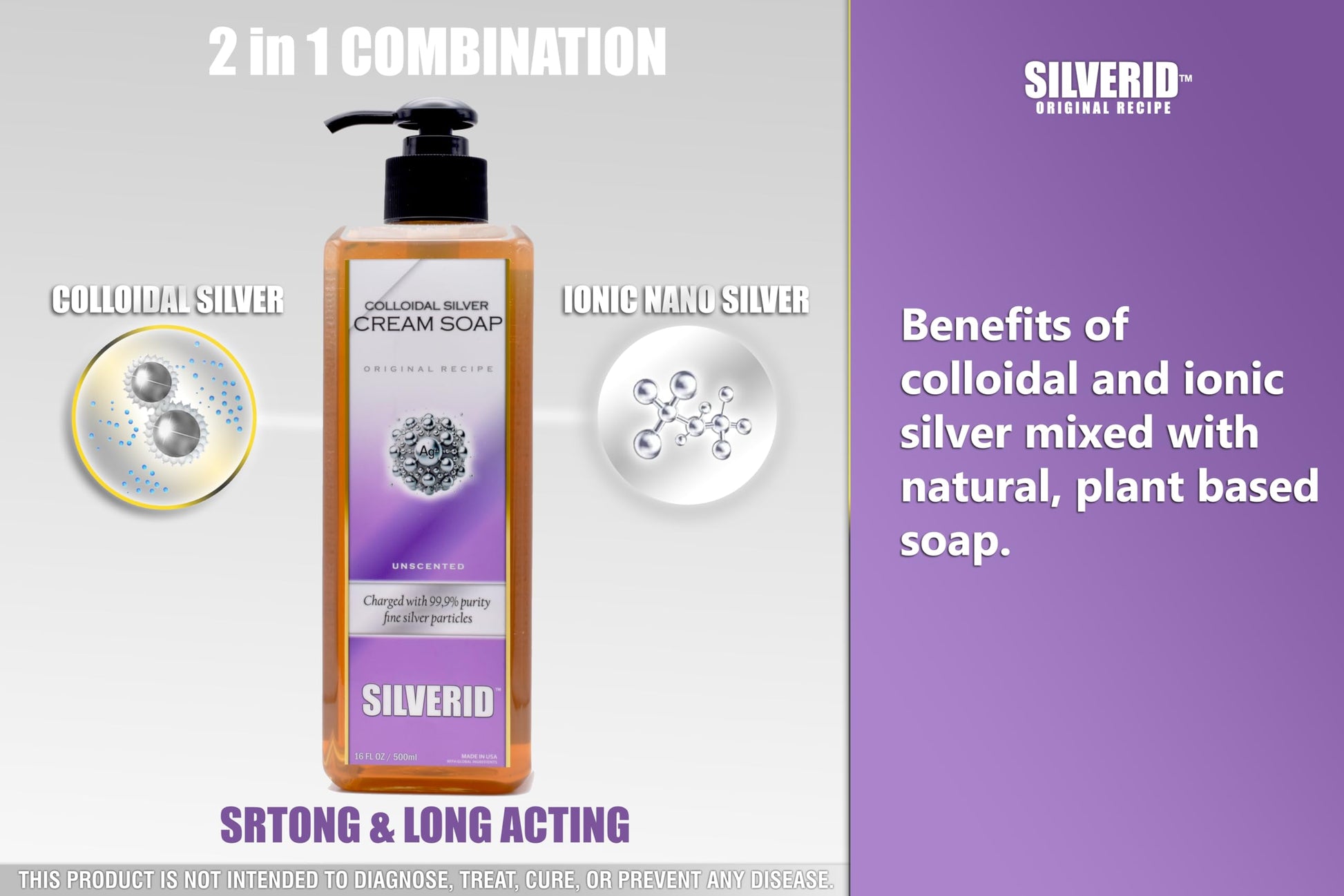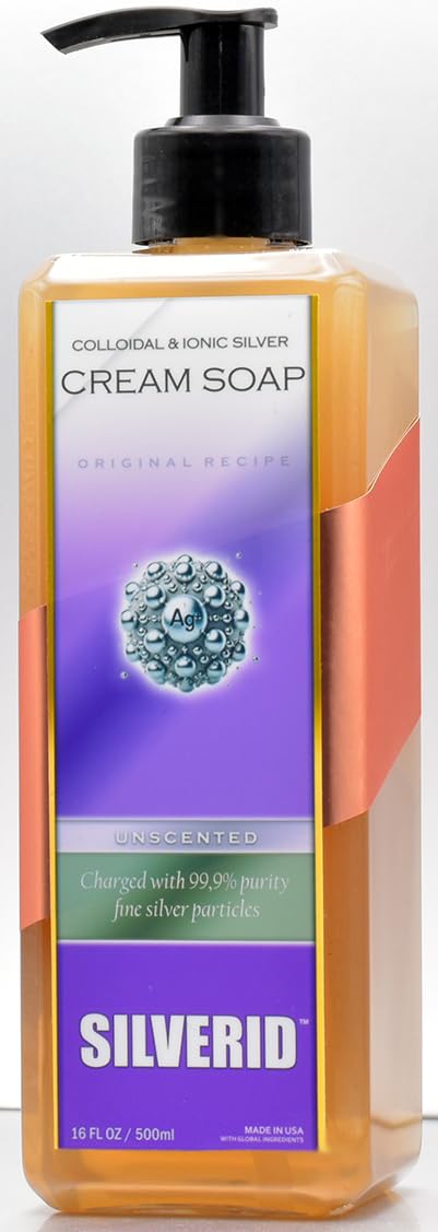 Colloidal Silver Soap, non-camedogenic, unscented, glycerin cream soap, body wash, hand soap, pore cleanser, paraben free, oil free, sulfate SLS free, Premium skin care (16FL OZ) Made in USA
