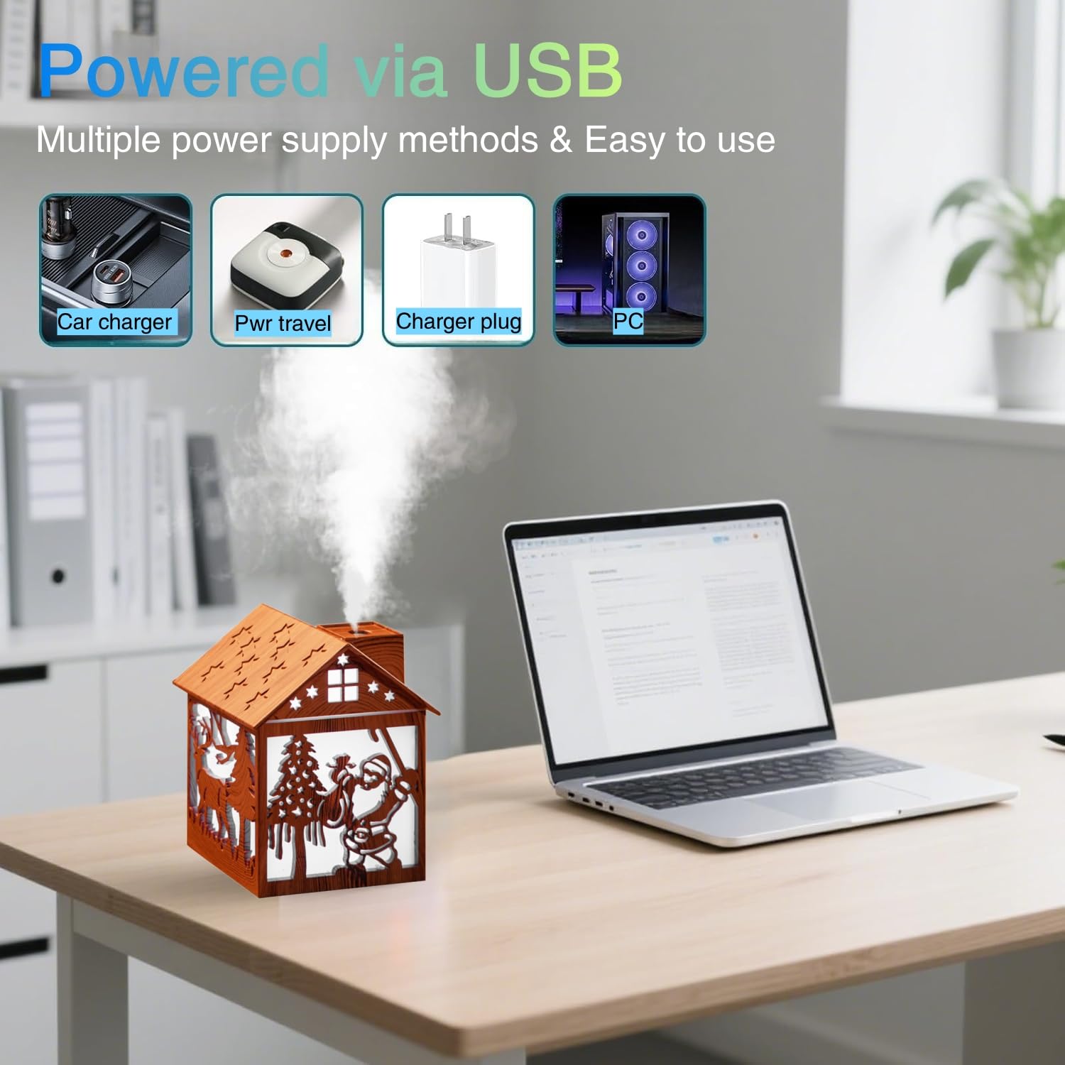 Colorful Cool Mini Humidifier, Cabin styling with Christmas theme,USB Personal Desktop Humidifier 2 Mist Modes, 7 colors,Super Quiet Perfect for Baby Bedroom, Office (Darkwood)