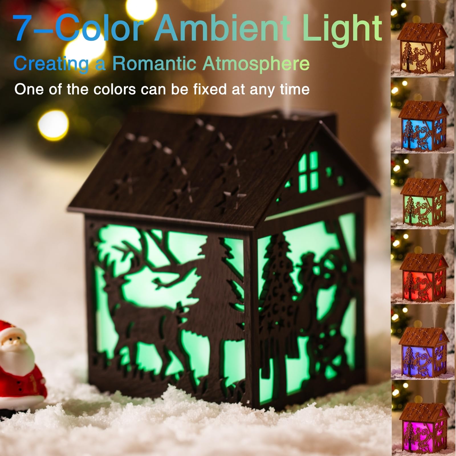 - 【Simple and fashions humidifier】 Humidifier with independent spray and light button, to avoid tedious operation, simple and clear,Cabin styling with Christmas theme,nano-atomization technology.Seven light colors and three light modes. More reasonable design