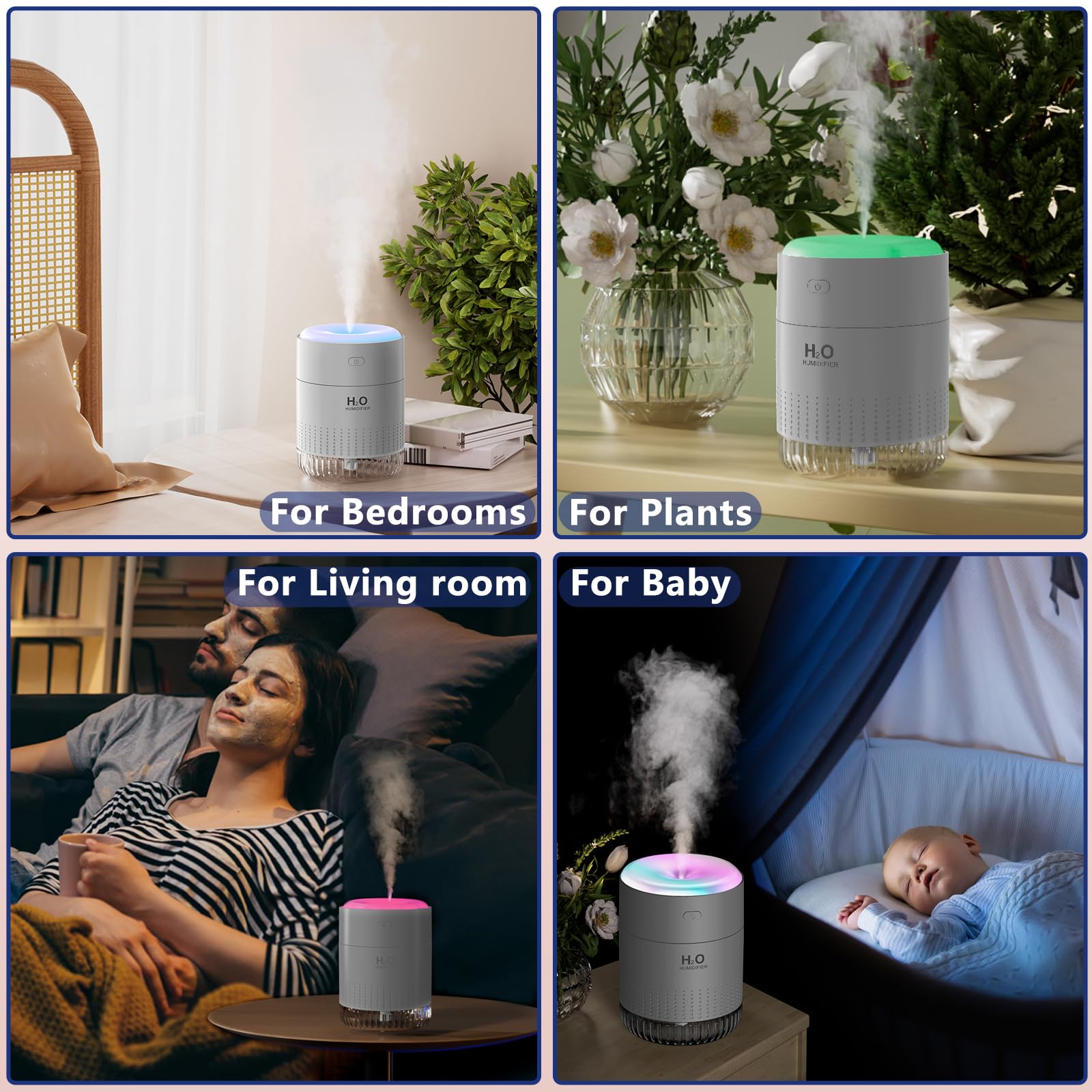 - Portable & Space-Saving Design: Colorful Mini Humidifier Ultra-compact size (just 4.7" tall) with a lightweight build, perfect for desks, nightstands, or travel. Takes up minimal space while delivering powerful hydration anywhere