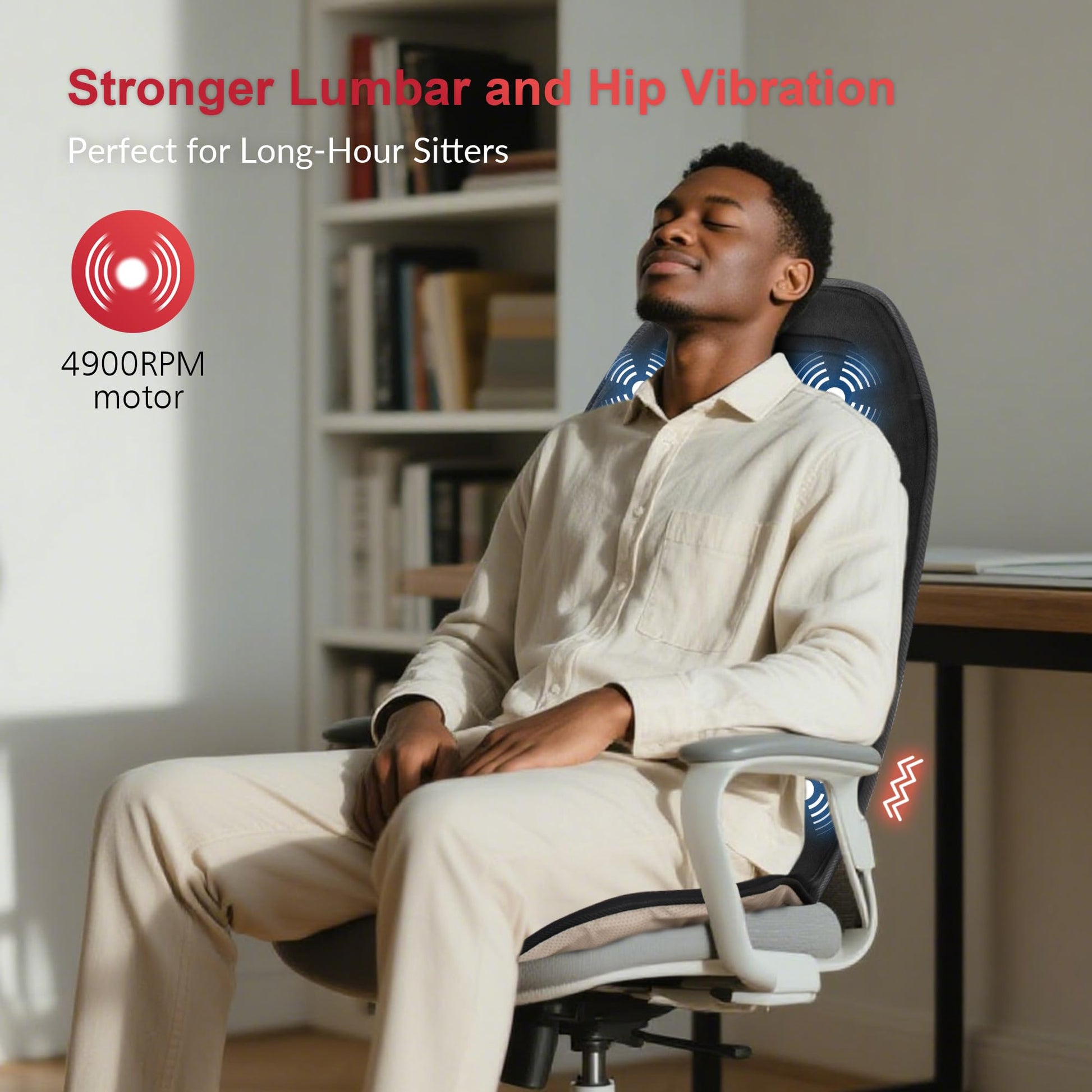 - Gentle Heating – The back massager with heat features 3 heat areas that cover the full back and seat area, offering soothing heat for your back, hips, and thighs. It’s a great seat warmer for colder days. The back and seat heaters can operate separately, with 2 heat levels to choose from. Experience soothing warmth in as fast as 3 minutes, with the heat reaching its maximum intensity within 10 minutes.