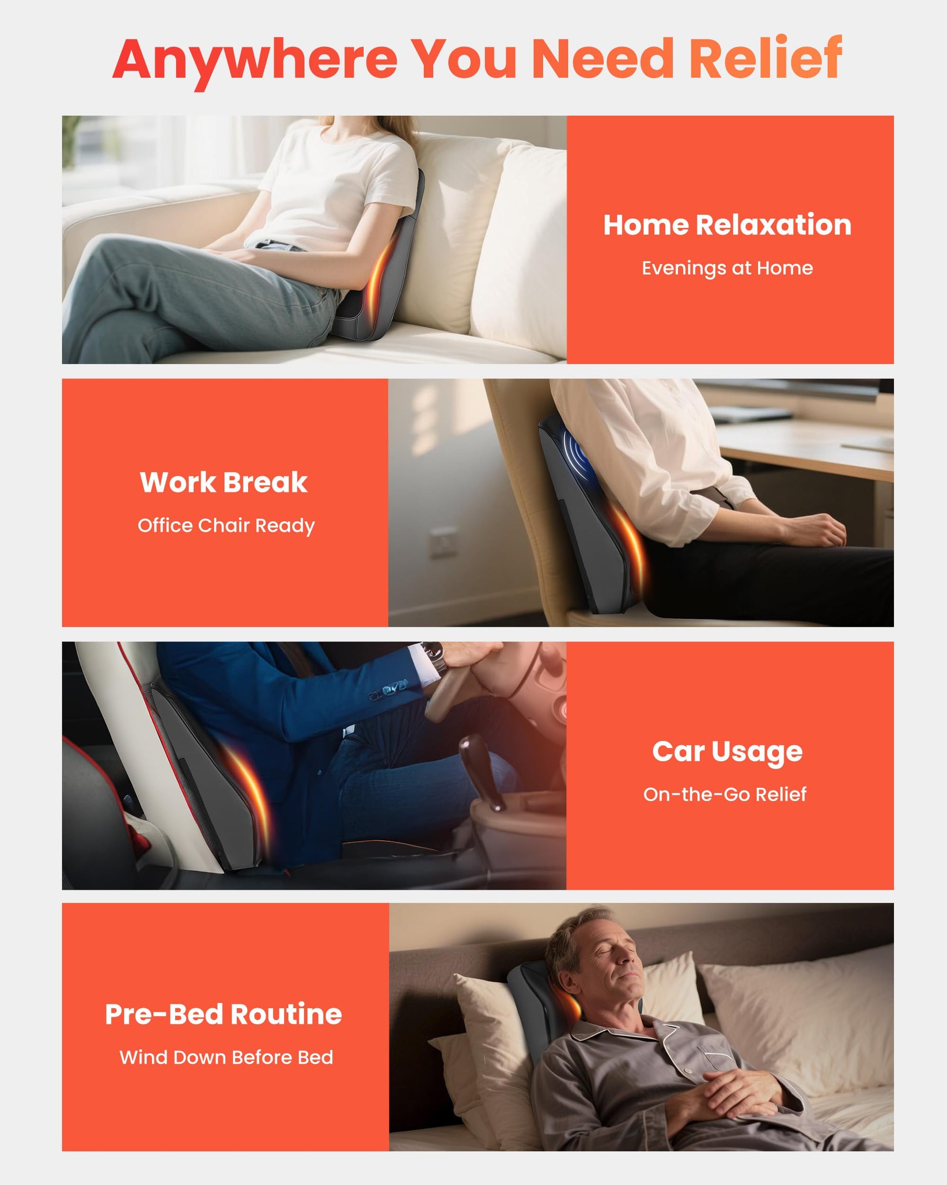 - Versatile Use on Chair, Sofa, or Office – More than Just a Neck Massager Perfectly fits your office chair or home recliner, making it ideal for work-from-home days or TV nights. Besides neck and back, use it on thighs, abdomen, or calves. A thoughtful massager for neck and shoulder pain, designed for all ages.