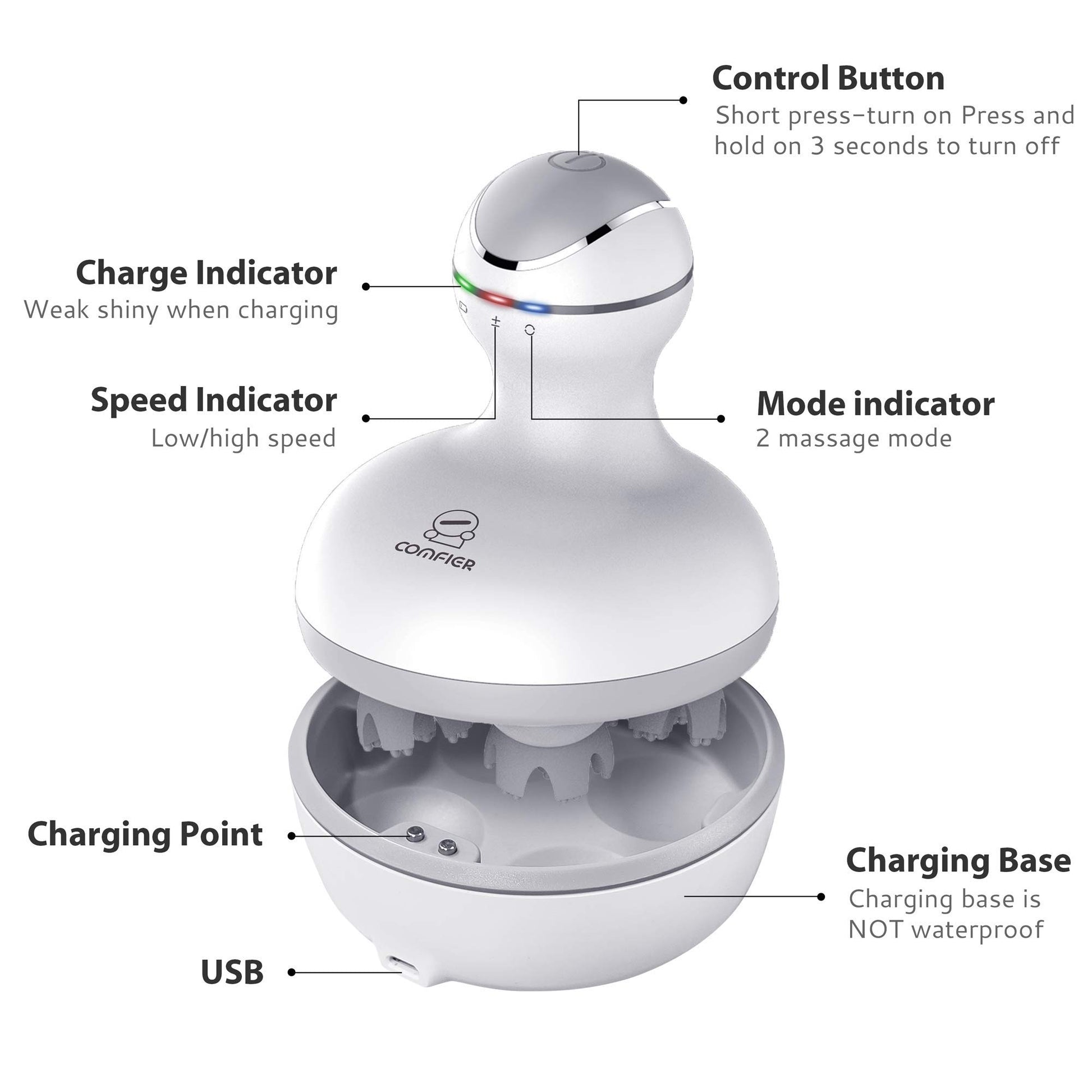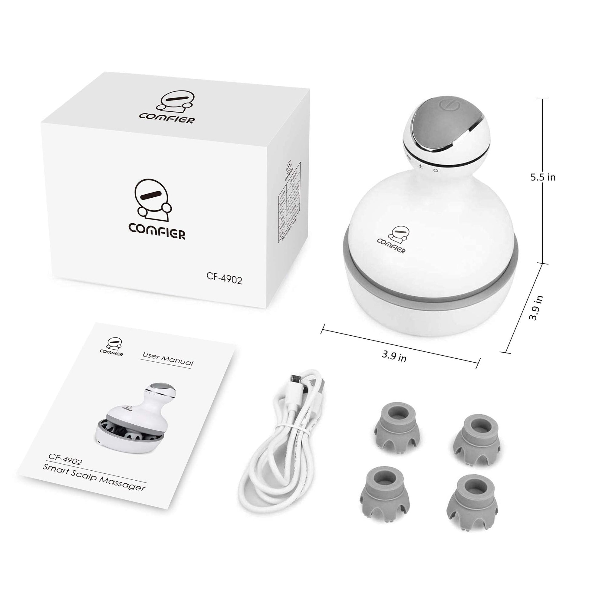 - Deep Scalp Massage :COMFIER head massager scalp has four massage heads with 28 individual nodes each which rotates both in clockwise and anti-clockwise direction giving you a soothing massage, hair deep Clean and relief stress & pain.