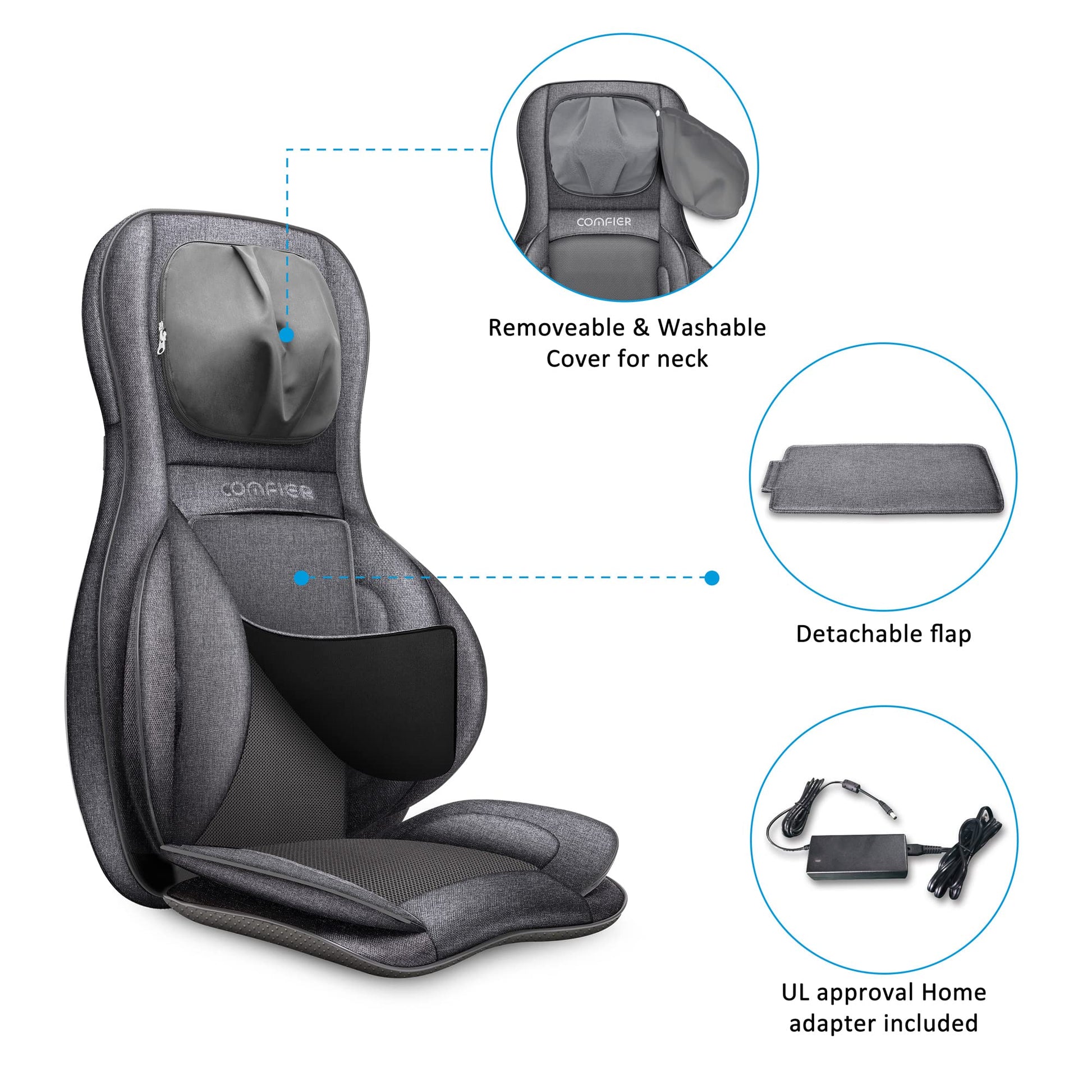 COMFIER Neck Back Massager with Heat, Compression 2D/3D Shiatsu Massager Chair Pad, Multiple Settings Massage Seat for Full Body Office Home Use